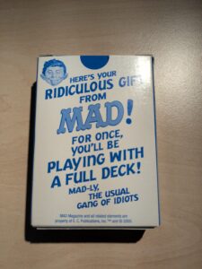 Selling a very well-preserved MAD magazine card game (French deck) from the USA. A rare opportunity for collectors of playing cards or MAD magazine collectibles. The game is in very good condition. $25.00