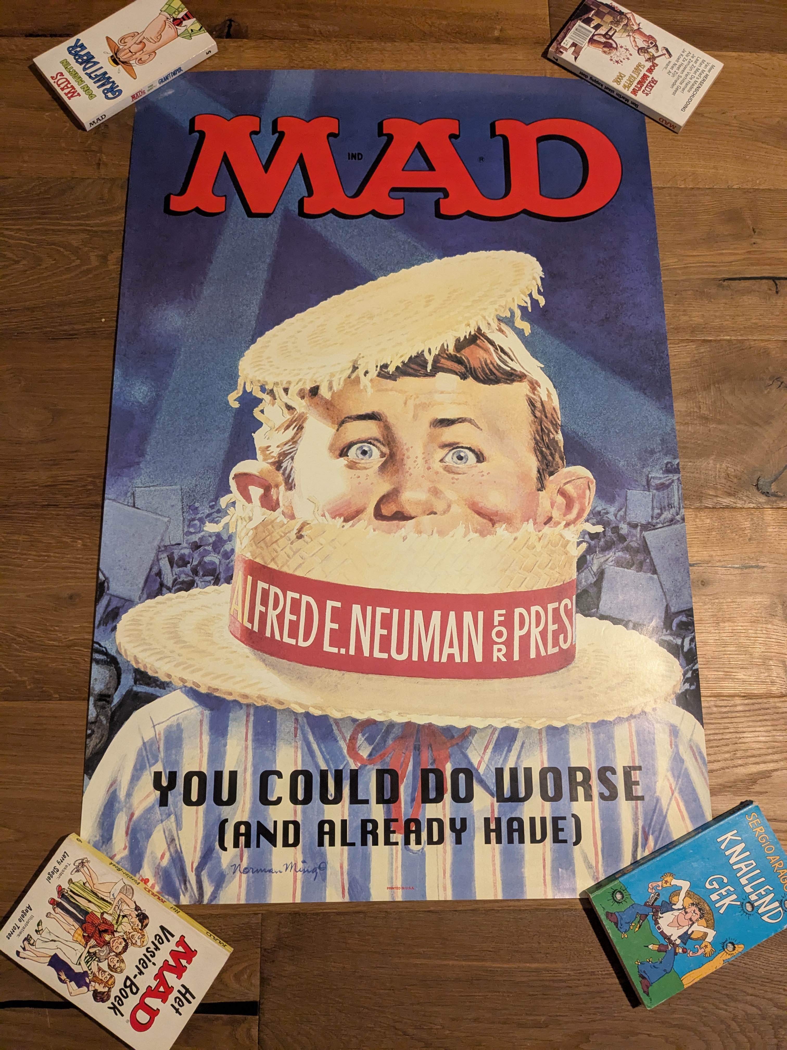 What I'm selling On this page I'll offer some of my MAD collectibles for sale or trade. Don't worry, I don't want to give up MAD collecting. My collector's room is bursting at the seams and it's time to clean up a bit. The collection offers a wide variety of items from the international world of MAD collectibles. These include MAD magazines, special editions, books and various, sometimes rare merchandise treasures. Trading is welcome I am also interested in trade offers as I am still looking for many Alfred E. Neuman and MAD collectibles for my collection. On this page I list collector's items in which I am particularly interested. Nevertheless I am open for all interesting offers in the area of Alfred E. Neuman and MAD Magazine memorabilia. Terms All prices are negotiable and shipping is from Switzerland. Of course there are discounts for purchases of multiple articles. If you have any questions, please use the contact form on the article page.