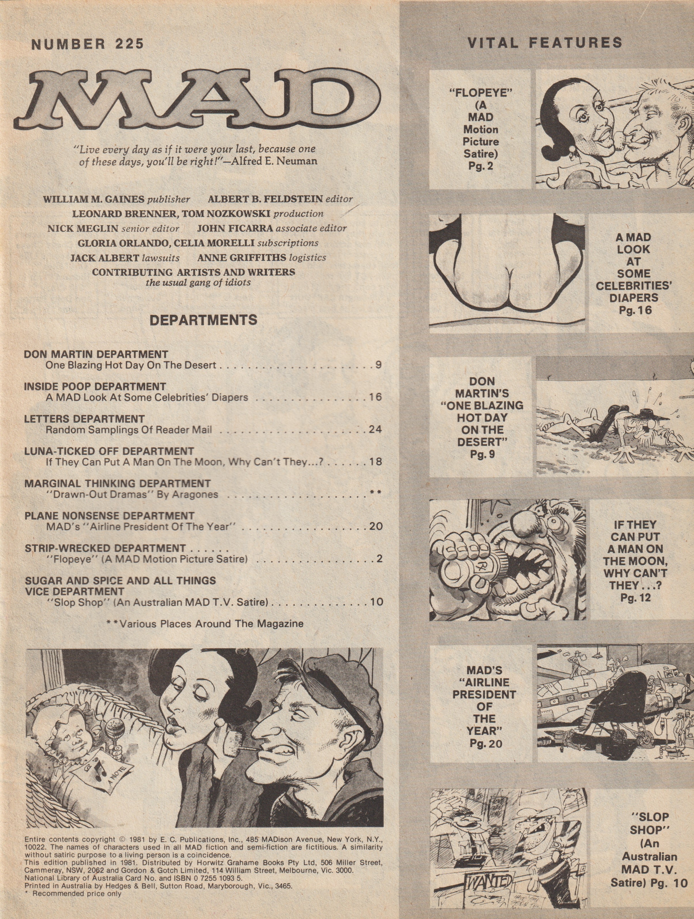 MAD Magazine #225 MAD Magazine (Australia) Updated: 0000 © CollectMAD.com Country: AustraliaOriginal cover: MAD Magazine #225 • USA • 1st Edition - New York Additional Images Cover Variations USAArgentinaBrasilFranceGreat BritainGreecePuerto RicoSweden