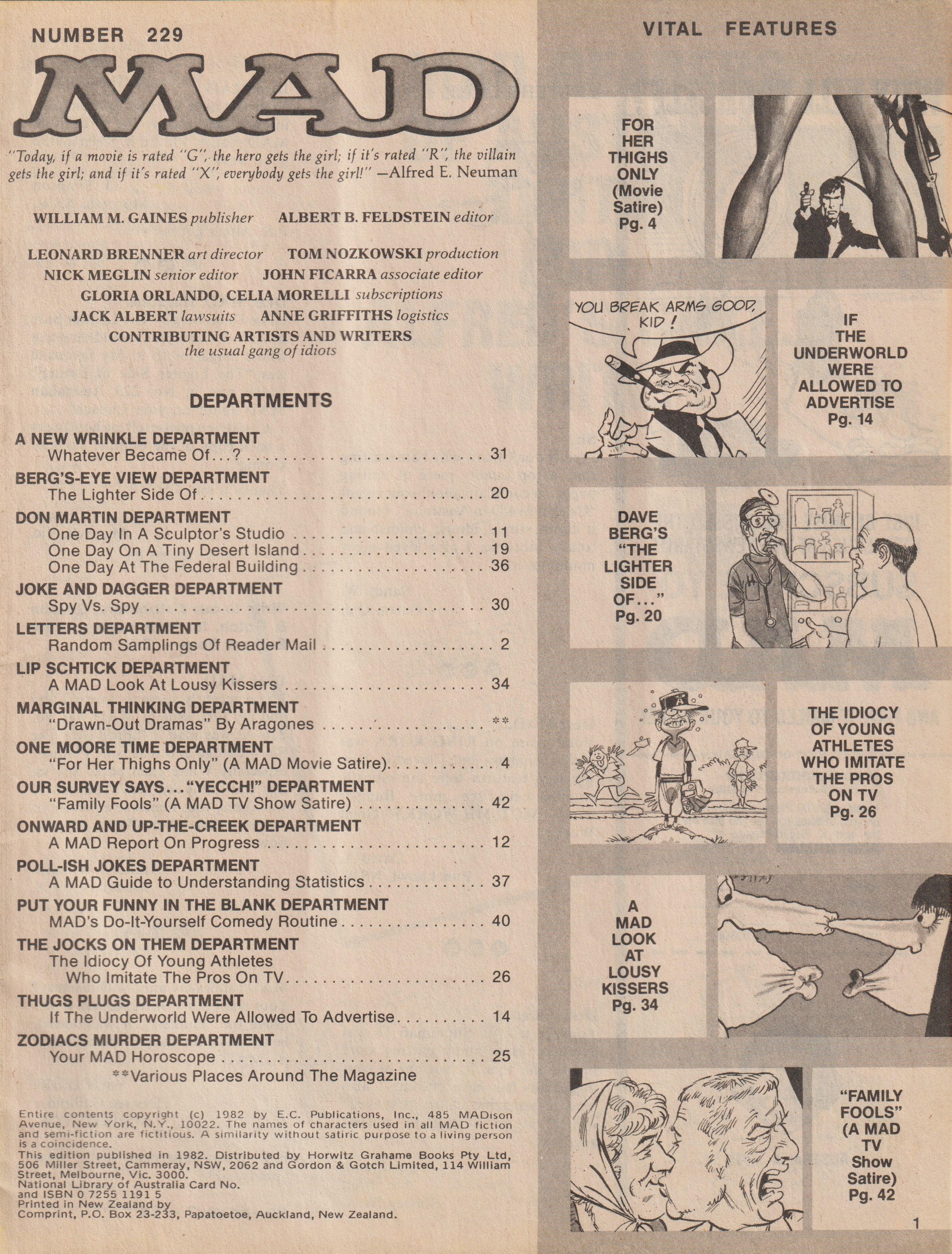 MAD Magazine #229 MAD Magazine (Australia) Updated: 0000 © CollectMAD.com Country: AustraliaOriginal cover: MAD Magazine #229 • USA • 1st Edition - New York Additional Images Cover Variations USAGreat BritainGreeceSwedenFinland