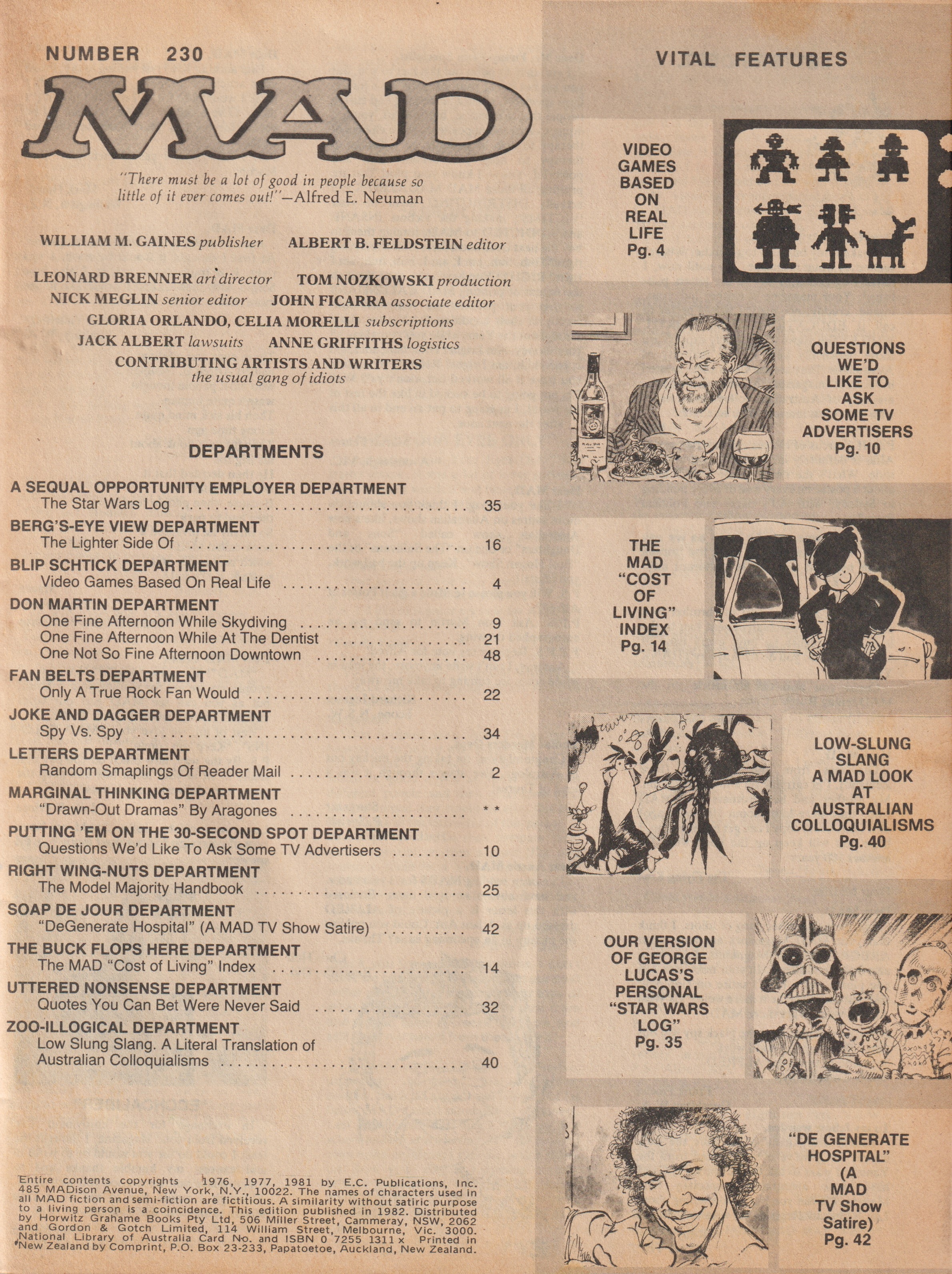 MAD Magazine #230 MAD Magazine (Australia) Updated: 0000 © CollectMAD.com Country: AustraliaOriginal cover: MAD Magazine #230 • USA • 1st Edition - New York Additional Images Cover Variations USABrasilFranceGreat BritainGermanyGreece