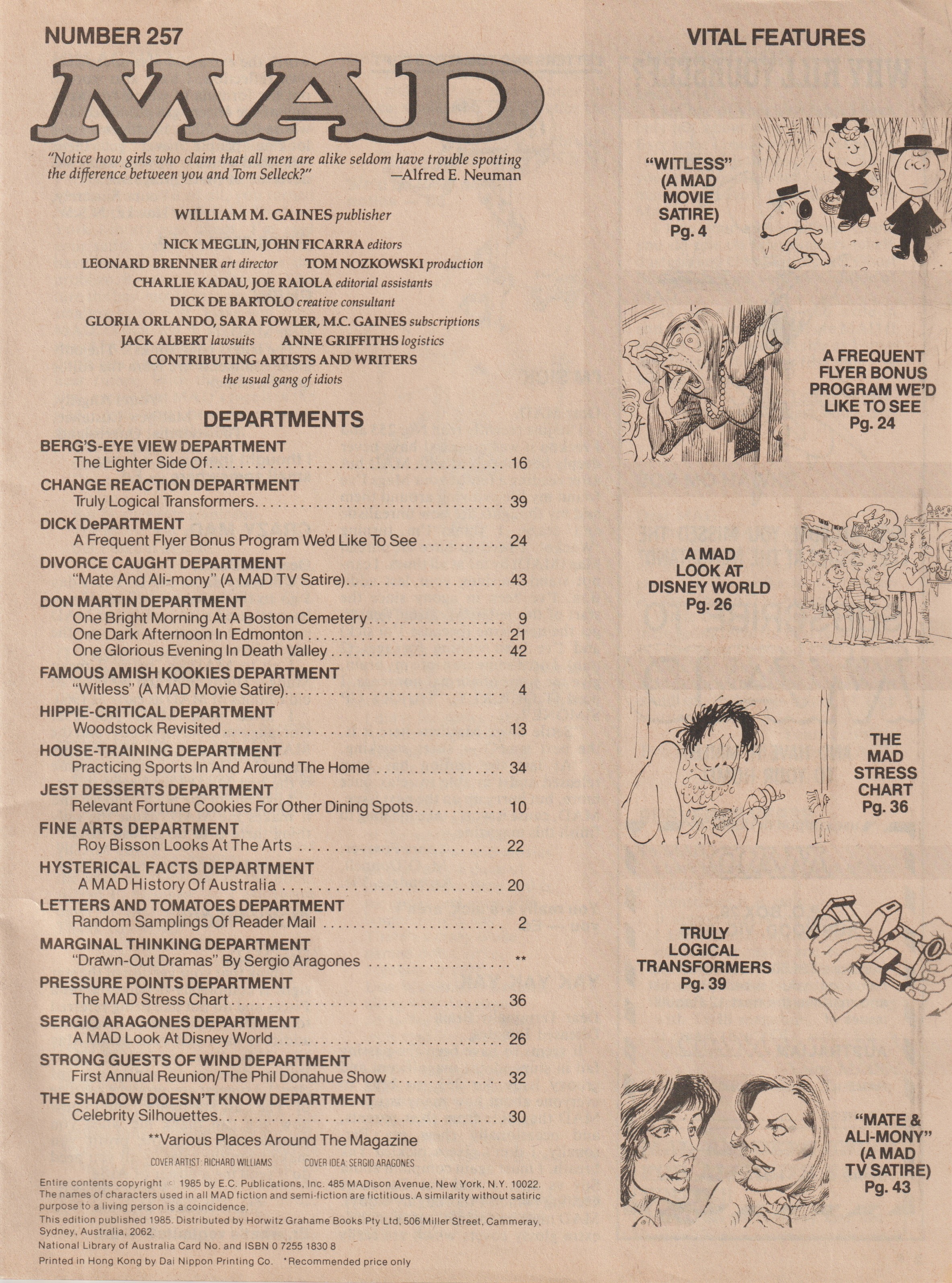 MAD Magazine #257 MAD Magazine (Australia) Updated: 0000 © CollectMAD.com Country: AustraliaOriginal cover: MAD Magazine #257 • USA • 1st Edition - New York Additional Images Cover Variations USABrasilDenmarkFinlandGreat BritainNetherlandsItalySouth AfricaSweden