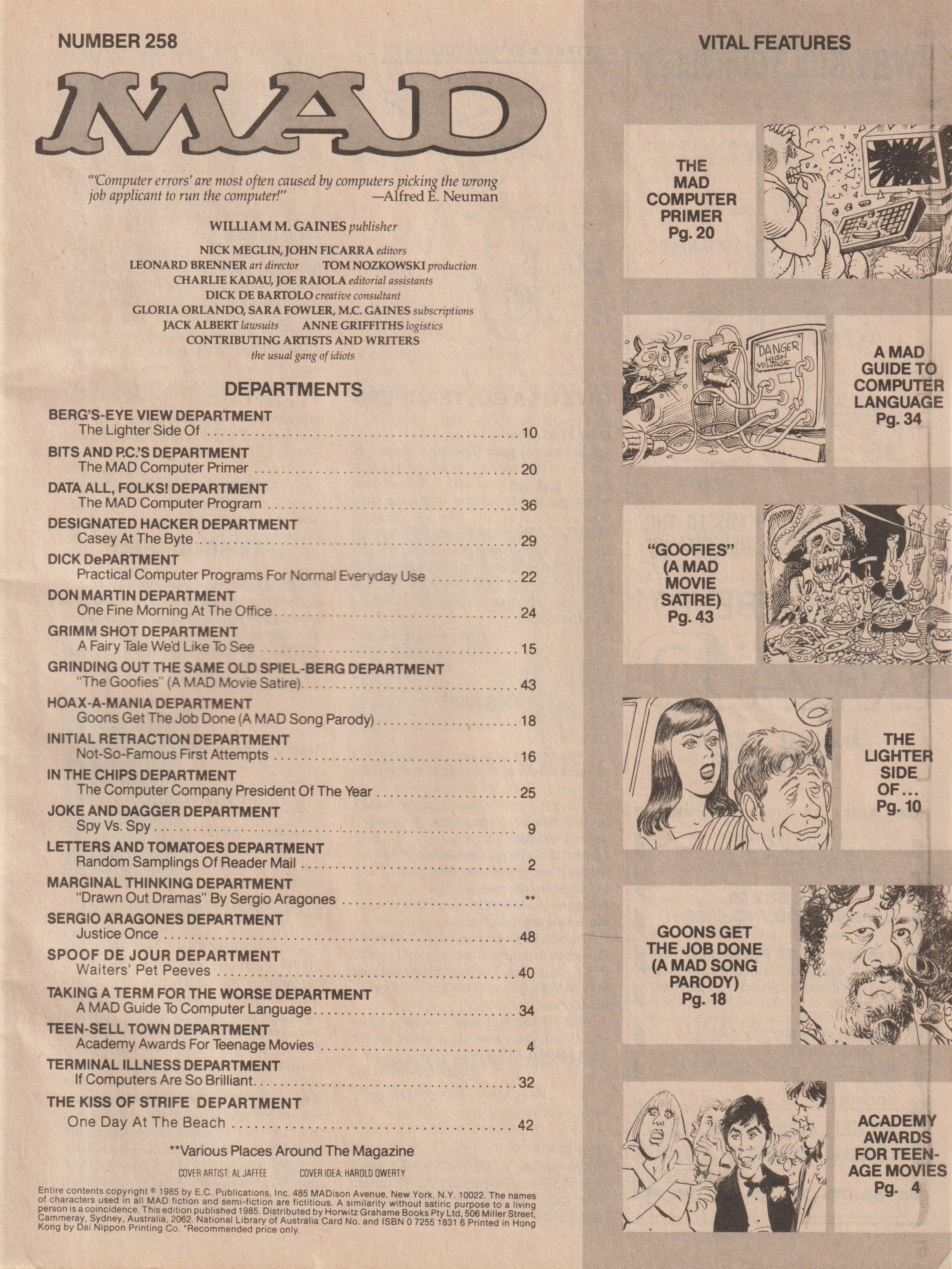 MAD Magazine #258 MAD Magazine (Australia) Updated: 0000 © CollectMAD.com Country: AustraliaOriginal cover: MAD Magazine #258 • USA • 1st Edition - New York Additional Images Cover Variations USAFinlandGreat BritainItalySouth AfricaSweden