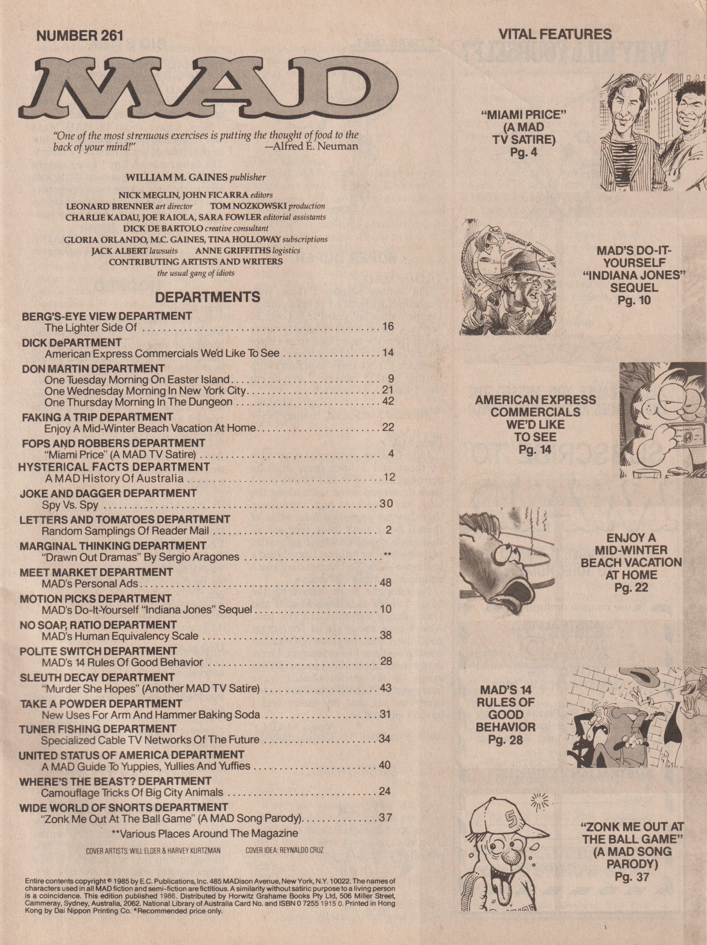 MAD Magazine #261 MAD Magazine (Australia) Updated: 0000 © CollectMAD.com Country: AustraliaOriginal cover: MAD Magazine #261 • USA • 1st Edition - New York Additional Images Cover Variations USAFinlandGreat BritainSouth Africa