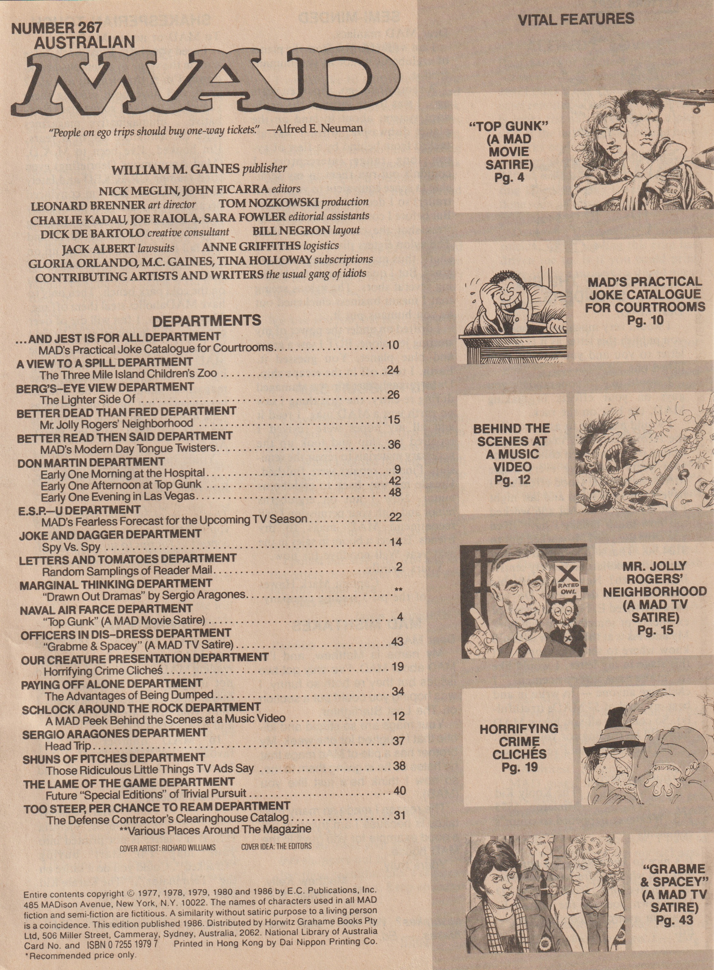 MAD Magazine #267 MAD Magazine (Australia) Updated: 0000 © CollectMAD.com Country: AustraliaOriginal cover: MAD Magazine #267 • USA • 1st Edition - New York Additional Images Cover Variations USABrasilFinlandGreat BritainSouth AfricaGreece