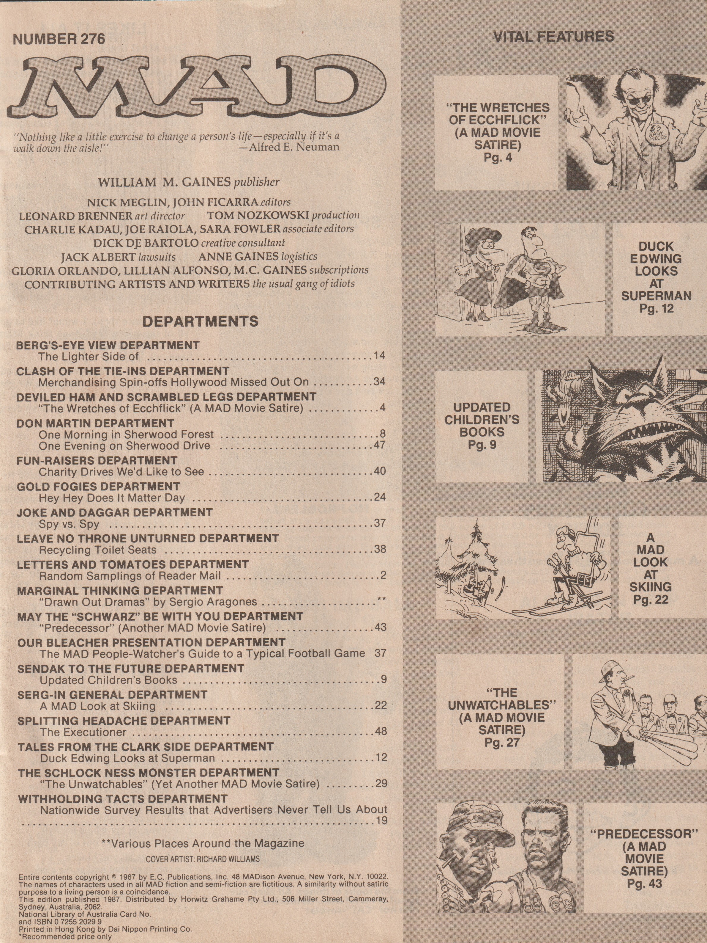 MAD Magazine #276 MAD Magazine (Australia) Updated: August 2nd, 2021 Country: AustraliaSale price: AU$1.95Format: Magazine Editorial Cover Artist: Craig Handley Additional Images
