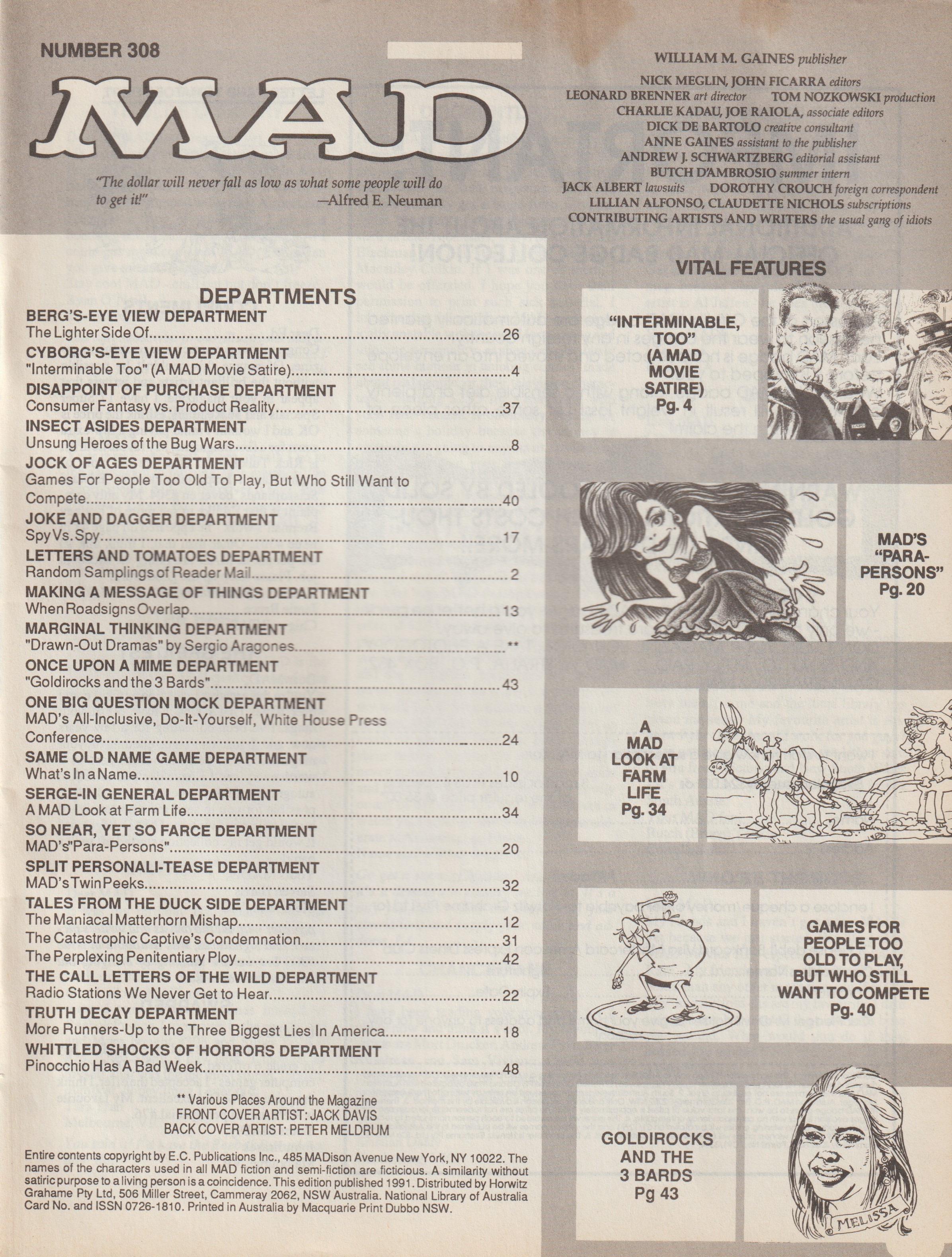MAD Magazine #308 MAD Magazine (Australia) Updated: 0000 © CollectMAD.com Country: AustraliaOriginal cover: MAD Magazine #308 • USA • 1st Edition - New York Additional Images Cover Variations USAFinlandGreat BritainSouth Africa