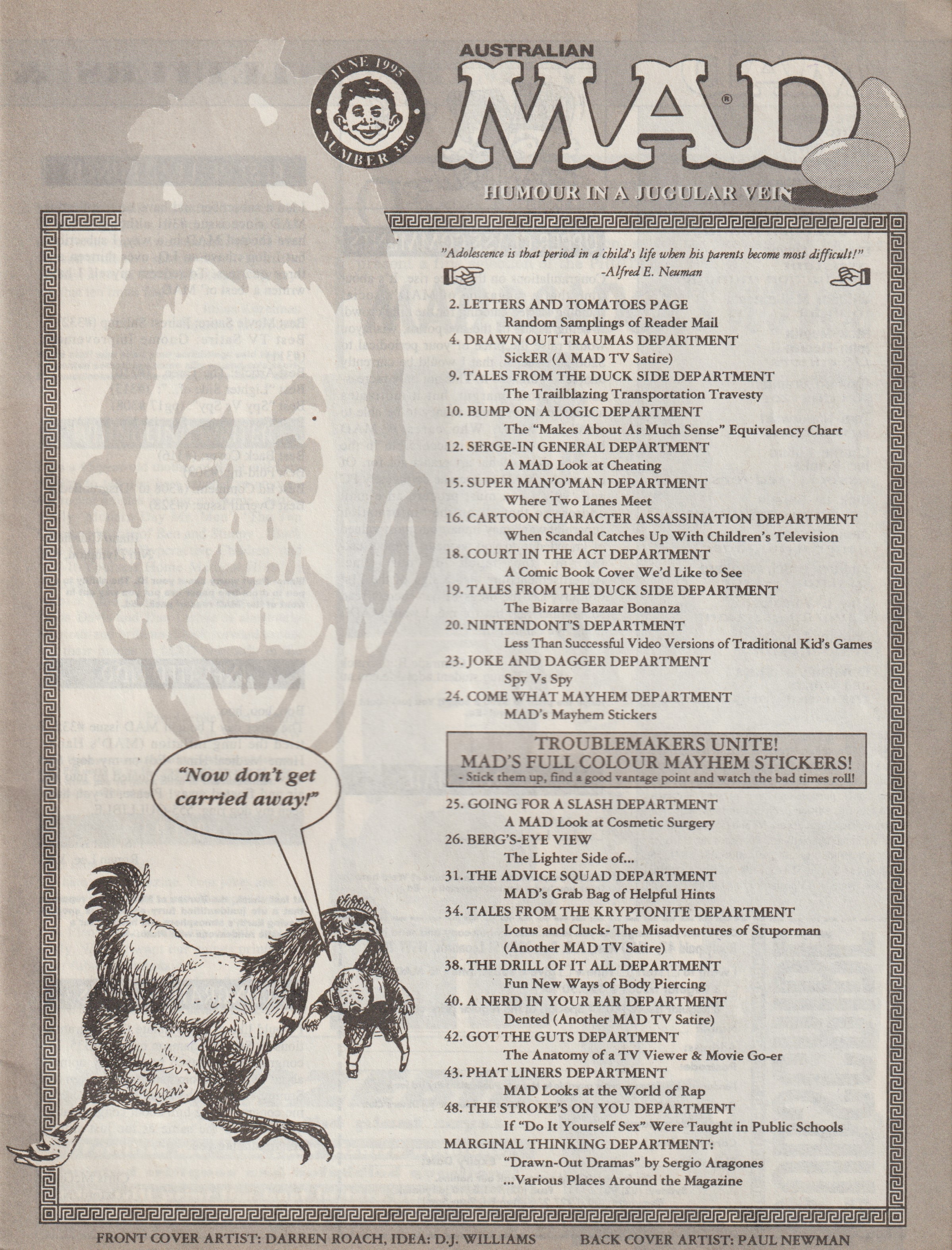 MAD Magazine #336 MAD Magazine (Australia) Updated: July 28th, 2021 Country: AustraliaCover: MAD Looks at Body PiercingSale price: AU$3.40Format: MagazineInserts: Sticker Sheet Editorial Cover Artist: Darren Roach Additional Images © CollectMAD.com