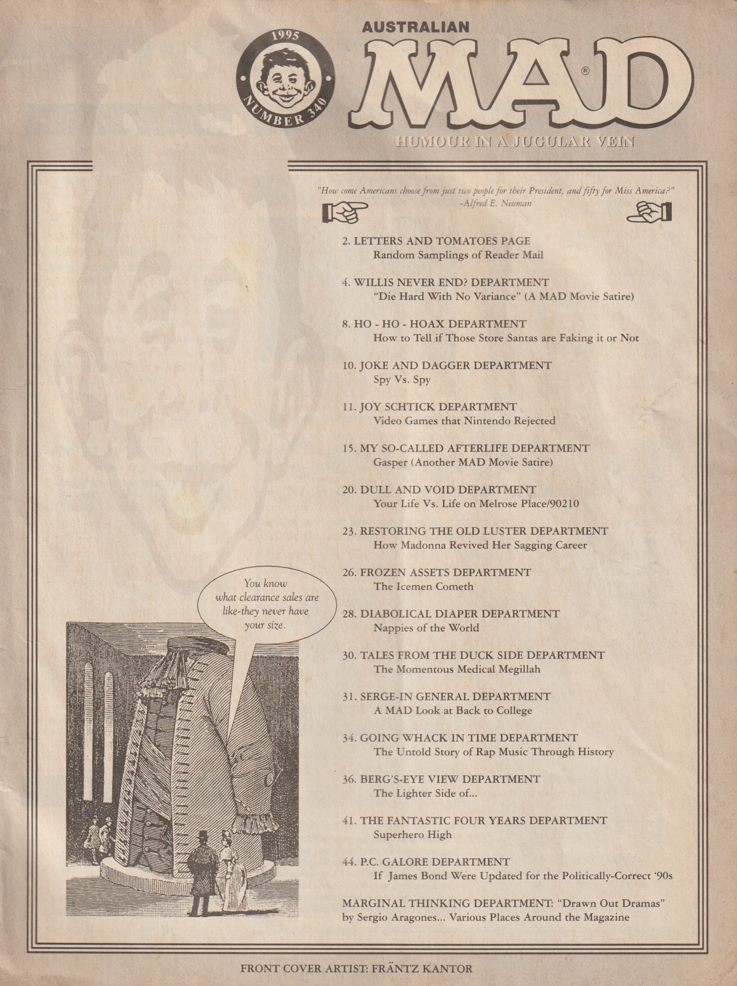 MAD Magazine #340 MAD Magazine (Australia) Updated: August 6th, 2021 Country: AustraliaCover: Another Life Saving IssueSale price: AU$3.40Format: Magazine Editorial Cover Artist: Frantz Kantor Additional Images