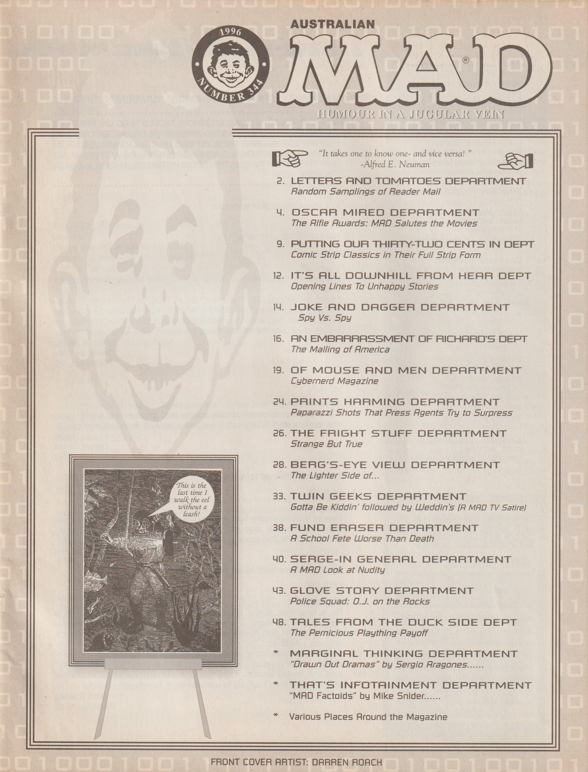 MAD Magazine #344 MAD Magazine (Australia) Updated: July 28th, 2021 Country: AustraliaCompany: Horwitz PublicationsCover: sEccchs on the InternetSale price: AU$3.40Format: Magazine Editorial Cover Artist: Darren Roach Additional Images