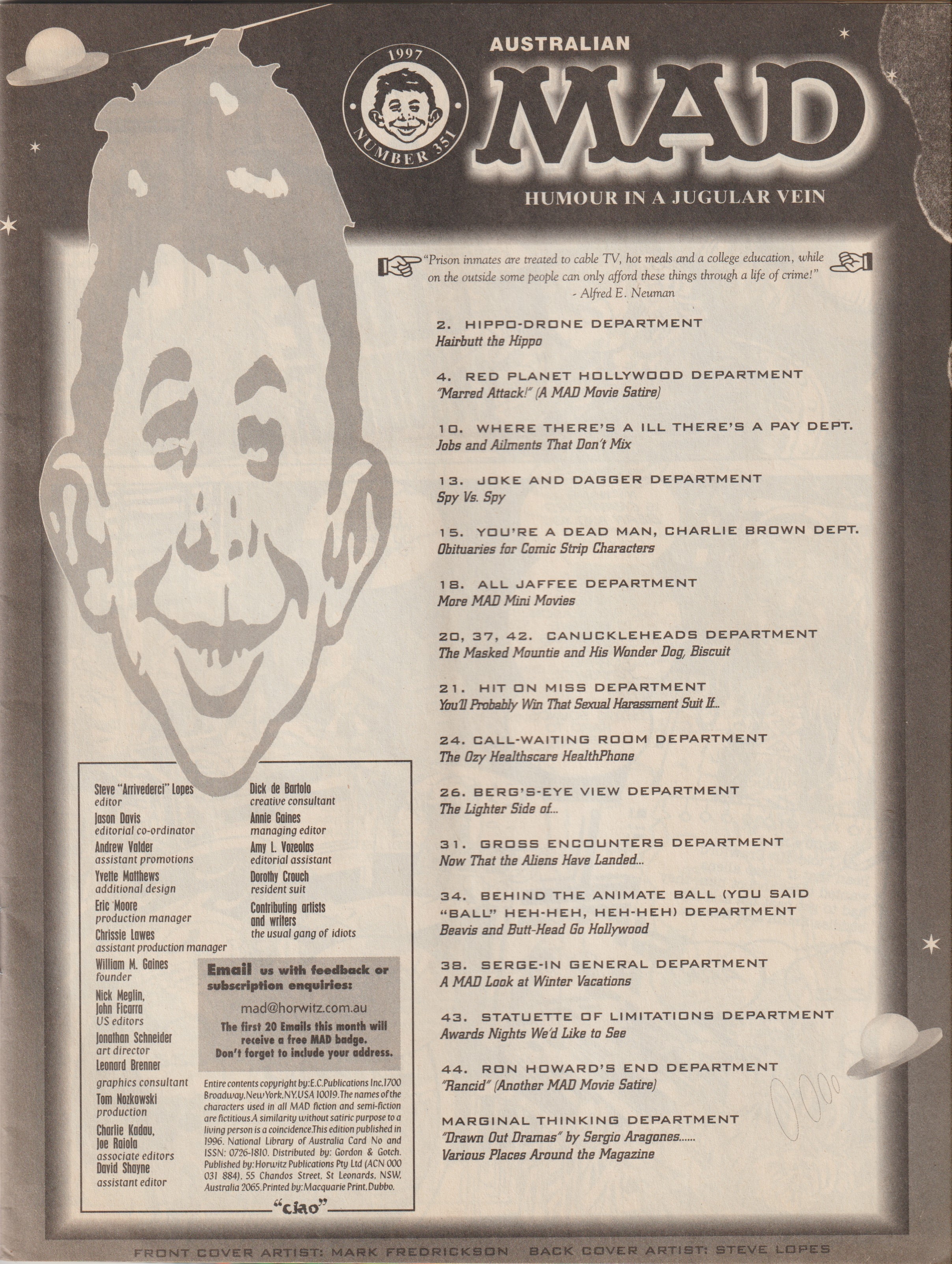 MAD Magazine #351 MAD Magazine (Australia) Updated: 0000 © CollectMAD.com Country: AustraliaOriginal cover: MAD Magazine #353 • USA • 1st Edition - New York Additional Images Cover Variations USAFinlandGreeceSouth Africa