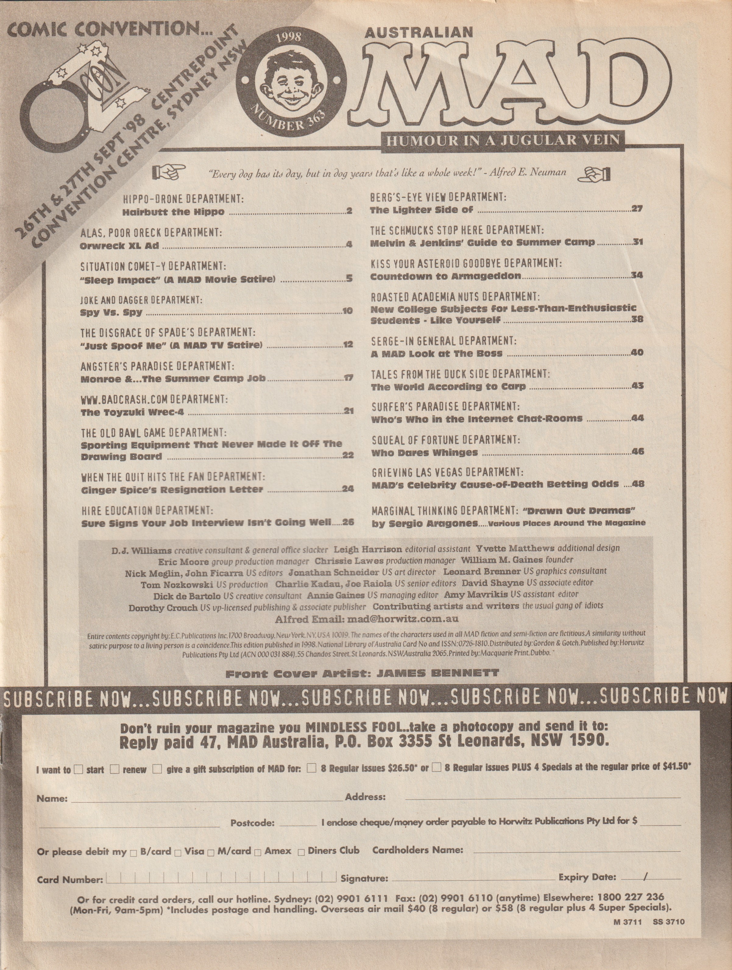 MAD Magazine #363 MAD Magazine (Australia) Updated: 0000 © CollectMAD.com Country: AustraliaOriginal cover: MAD Magazine #373 • USA • 1st Edition - New York Editorial Editor: Dave Williams Additional Images Cover Variations USADenmarkFinland