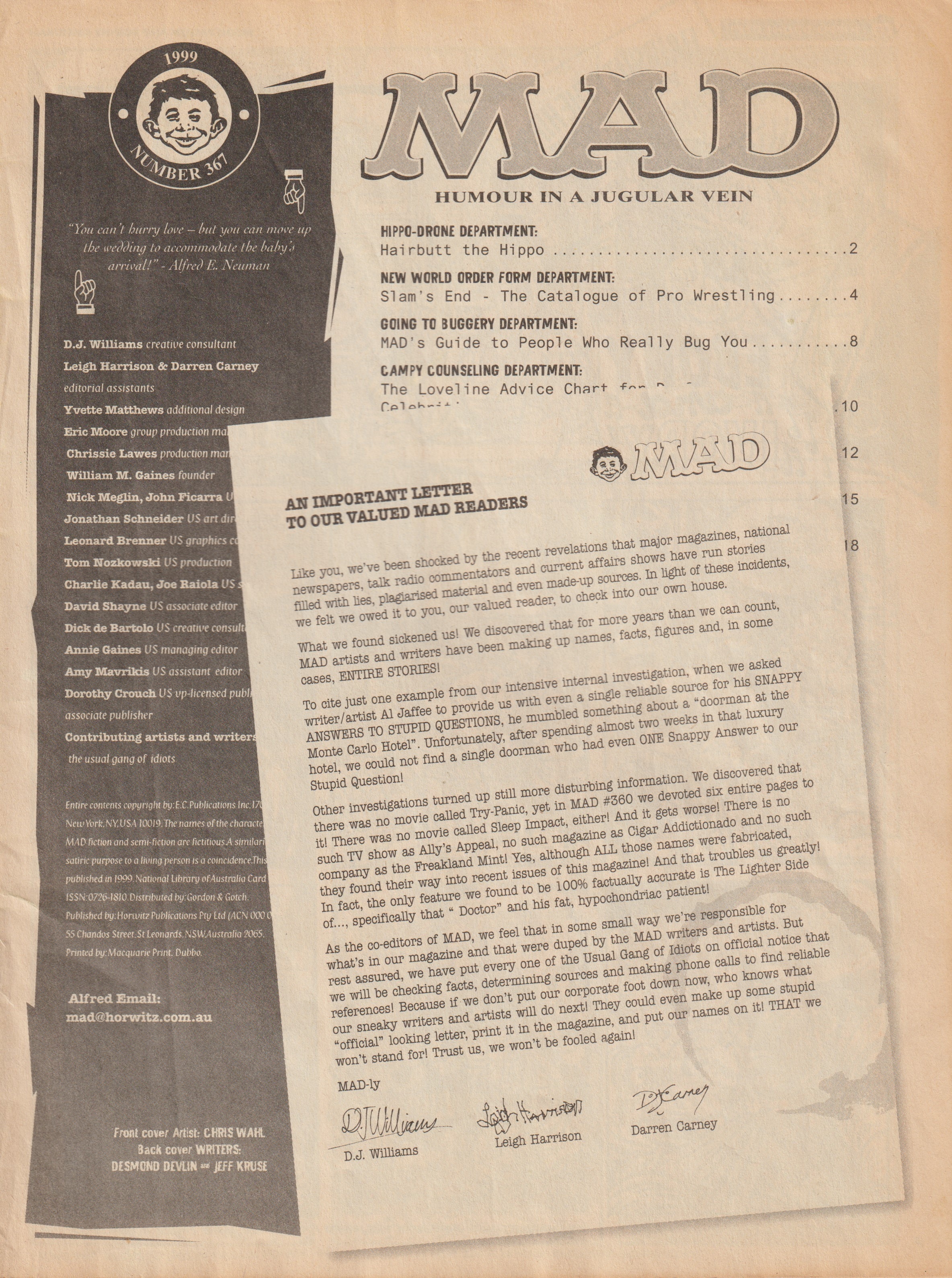 MAD Magazine #367 MAD Magazine (Australia) Updated: August 6th, 2021 Country: AustraliaCover: Wrestling SlammedSale price: AU$3.70Format: Magazine Editorial Editor: Dave WilliamsCover Artist: Chris Wahl Additional Images