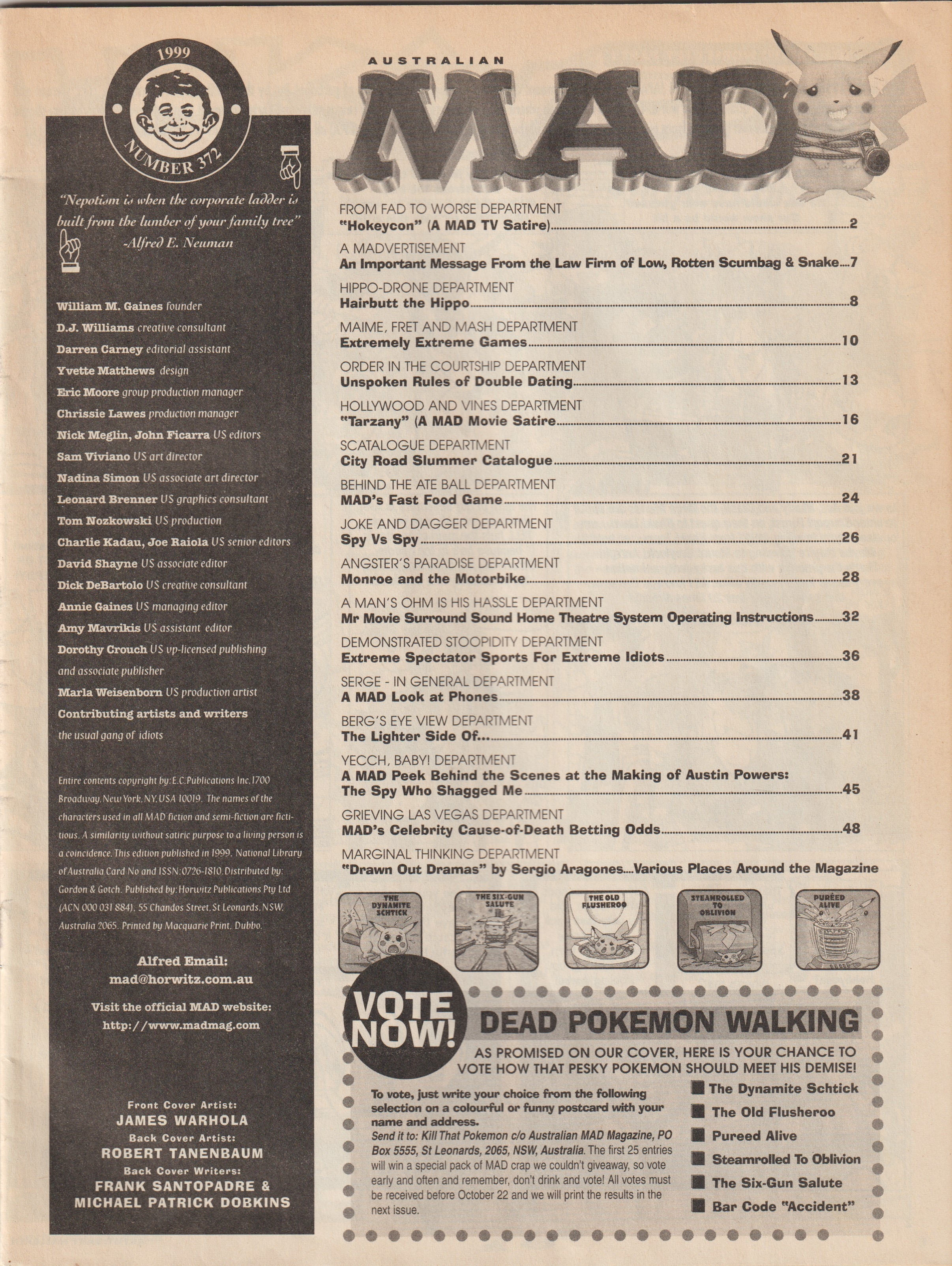 MAD Magazine #372 MAD Magazine (Australia) Updated: 0000 © CollectMAD.com Country: AustraliaOriginal cover: MAD Magazine #386 • USA • 1st Edition - New York Editorial Editor: Dave Williams Additional Images Cover Variations USABrasilDenmarkHungaryIndiaSweden