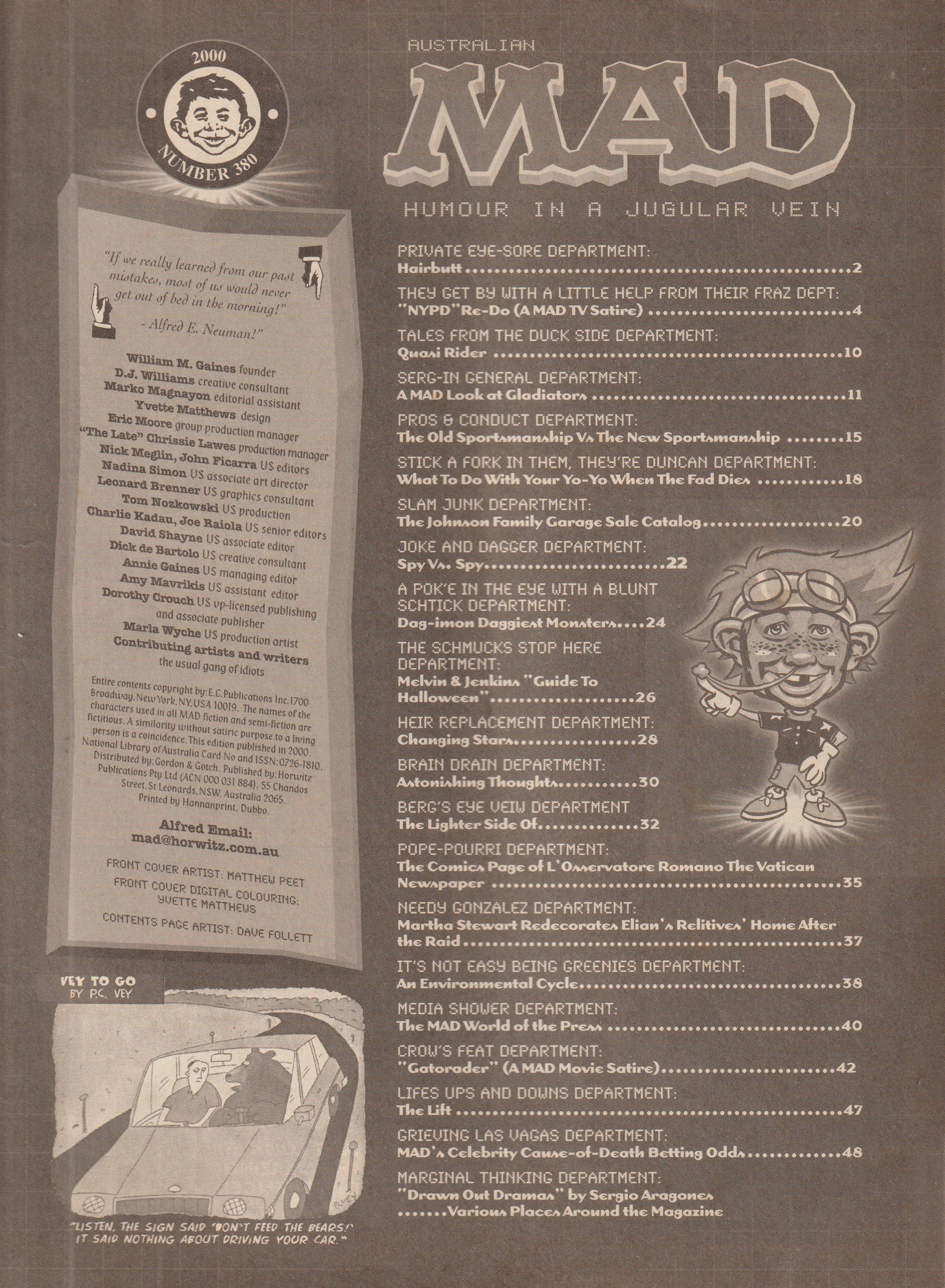 MAD Magazine #380 MAD Magazine (Australia) Updated: 0000 © CollectMAD.com Country: Australia Editorial Editor: Dave Williams Additional Images