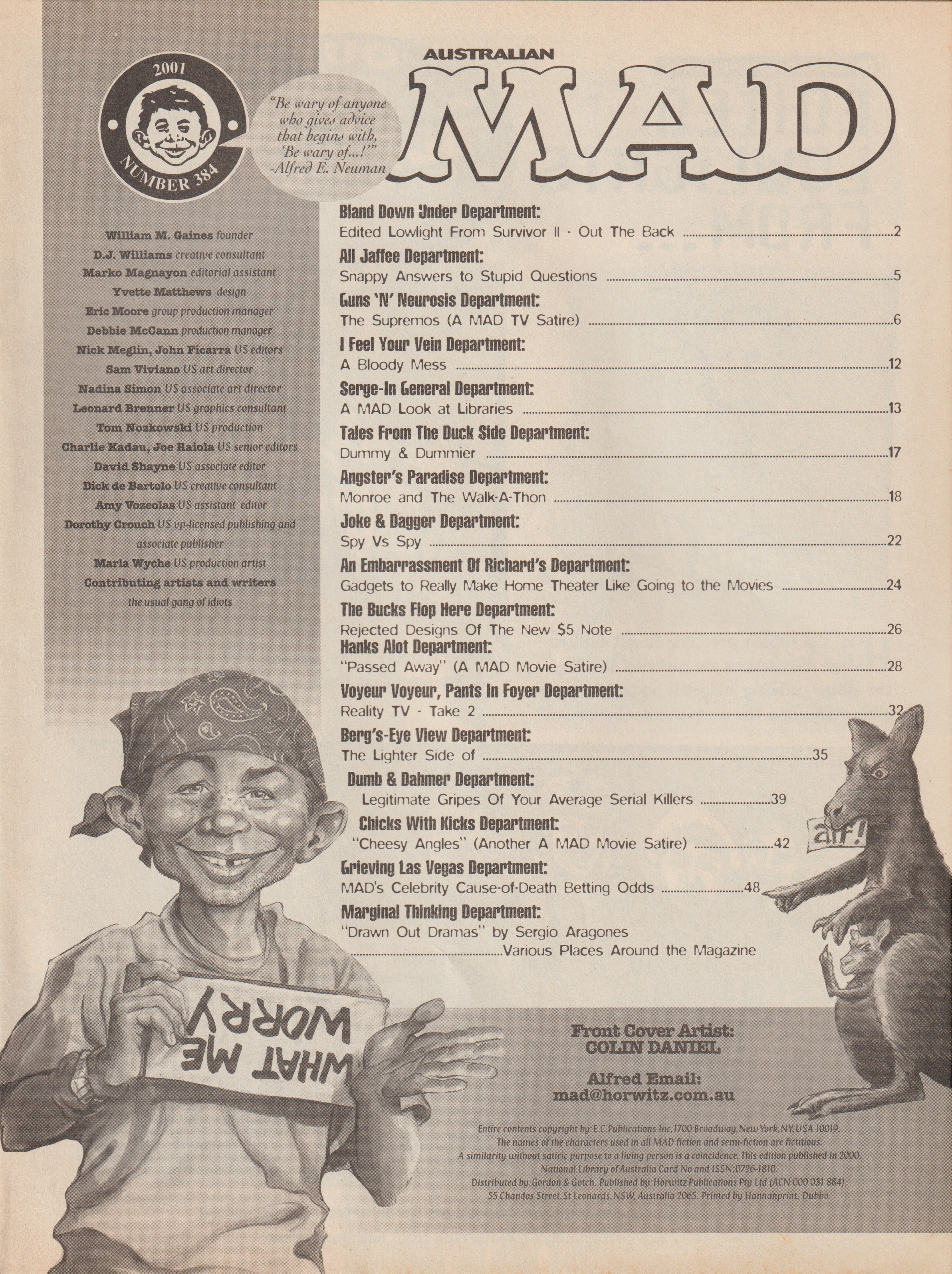 MAD Magazine #384 MAD Magazine (Australia) Updated: 0000 © CollectMAD.com Country: Australia Editorial Editor: Dave Williams Additional Images