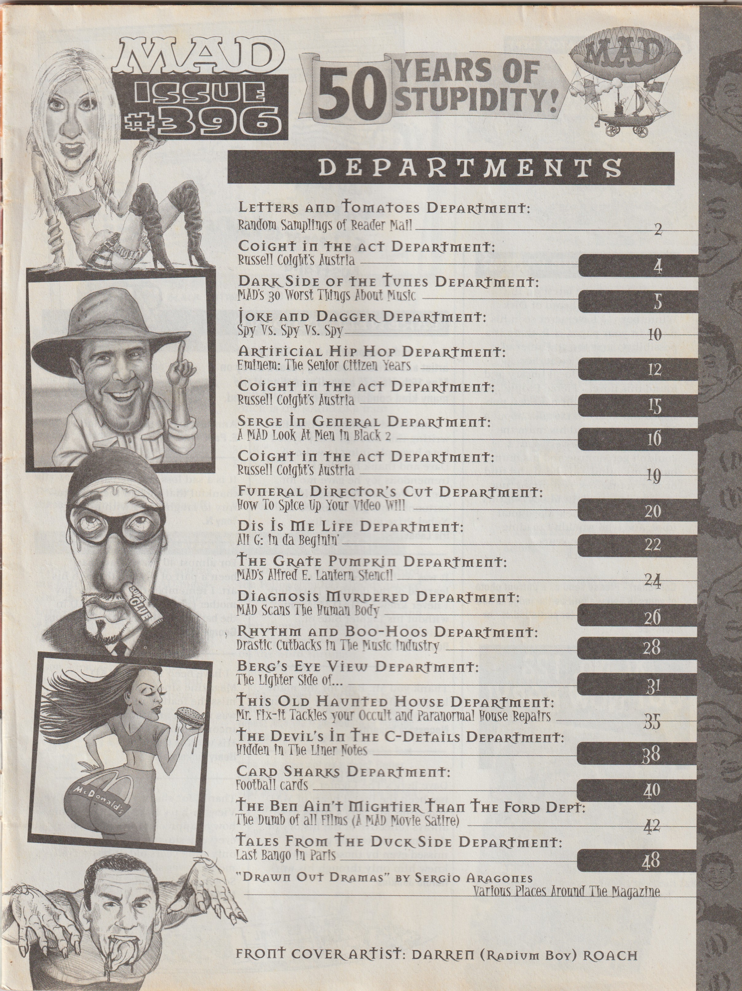MAD Magazine #396 MAD Magazine (Australia) Updated: July 28th, 2021 Country: AustraliaCover: Russel Coight's All Ozzy AdventuresSale price: AU$4.95Format: Magazine Editorial Editor: Dave WilliamsCover Artist: Darren Roach Additional Images