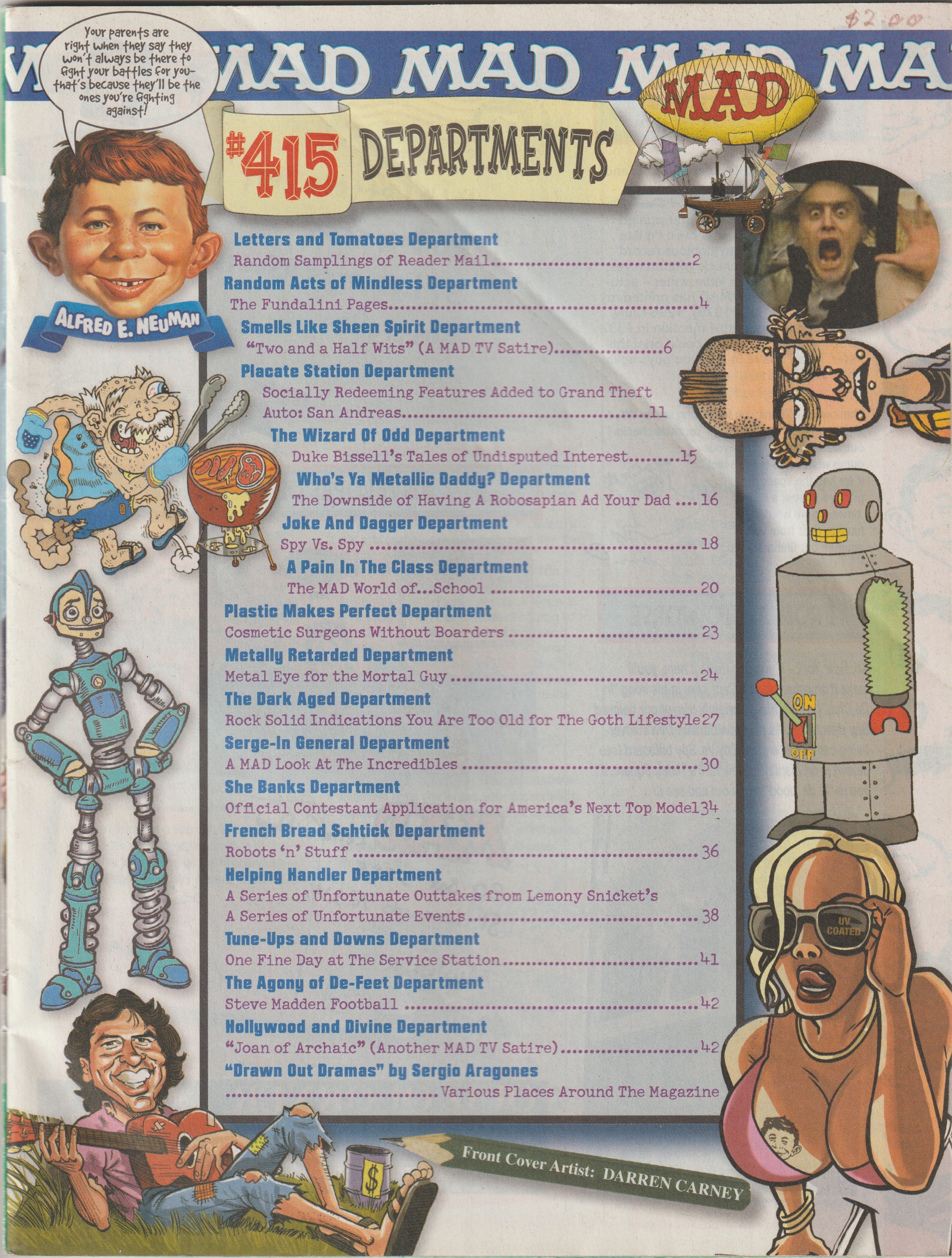 MAD Magazine #415 MAD Magazine (Australia) Updated: August 2nd, 2021 Country: AustraliaCover: We trash RobotsSale price: AU$5.50Format: Magazine Editorial Editor: Dave WilliamsCover Artist: Darren Carney Additional Images