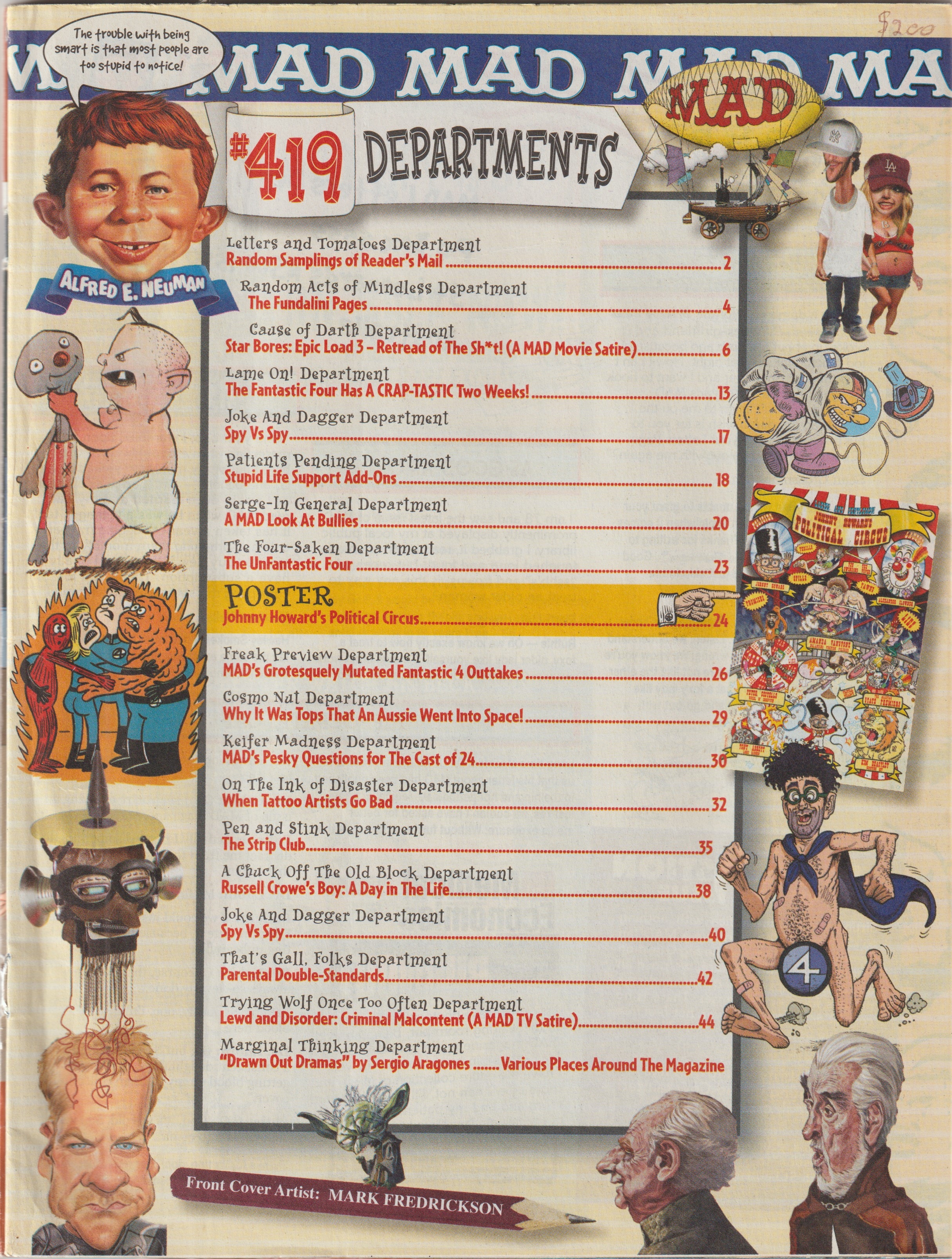 MAD Magazine #419 MAD Magazine (Australia) Updated: 0000 © CollectMAD.com Country: AustraliaOriginal cover: MAD Magazine #456 • USA • 1st Edition - New York Editorial Editor: Dave Williams Additional Images Cover Variations USAMexicoSouth Africa
