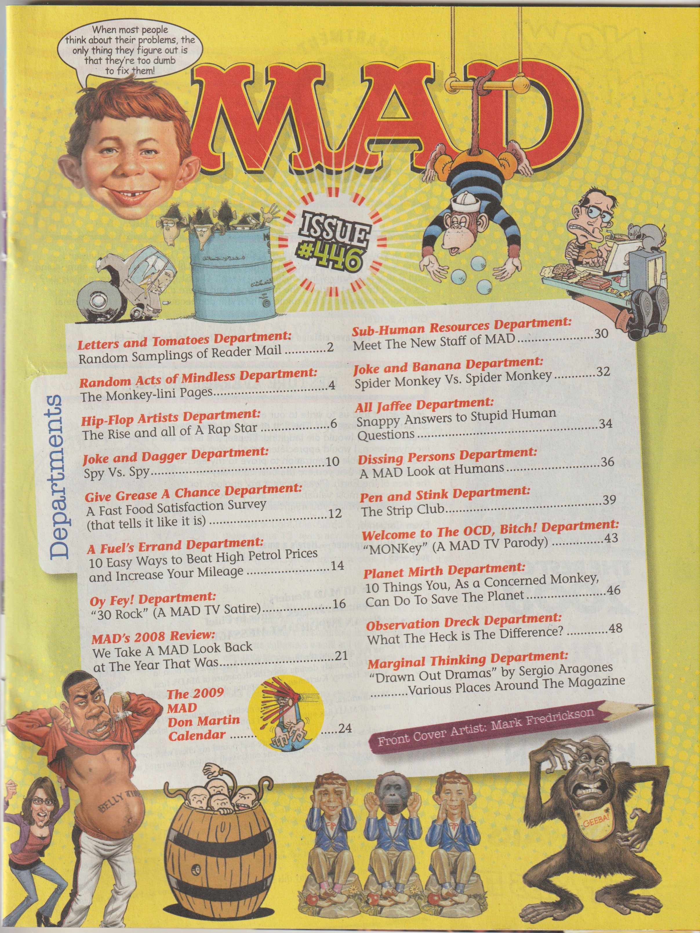 MAD Magazine #446 MAD Magazine (Australia) Updated: 0000 Country: AustraliaCompany: Thunder's Mouth PressPublished: 2009Cover: The rise and fall of a Rap Star!Original cover: MAD Magazine #496 • USA • 1st Edition - New YorkSale price: $5.95Pages: 50 Editorial Editor: Dave WilliamsCover Artist: Gail Kendrick Additional Images Cover Variations USAGermanyMexico