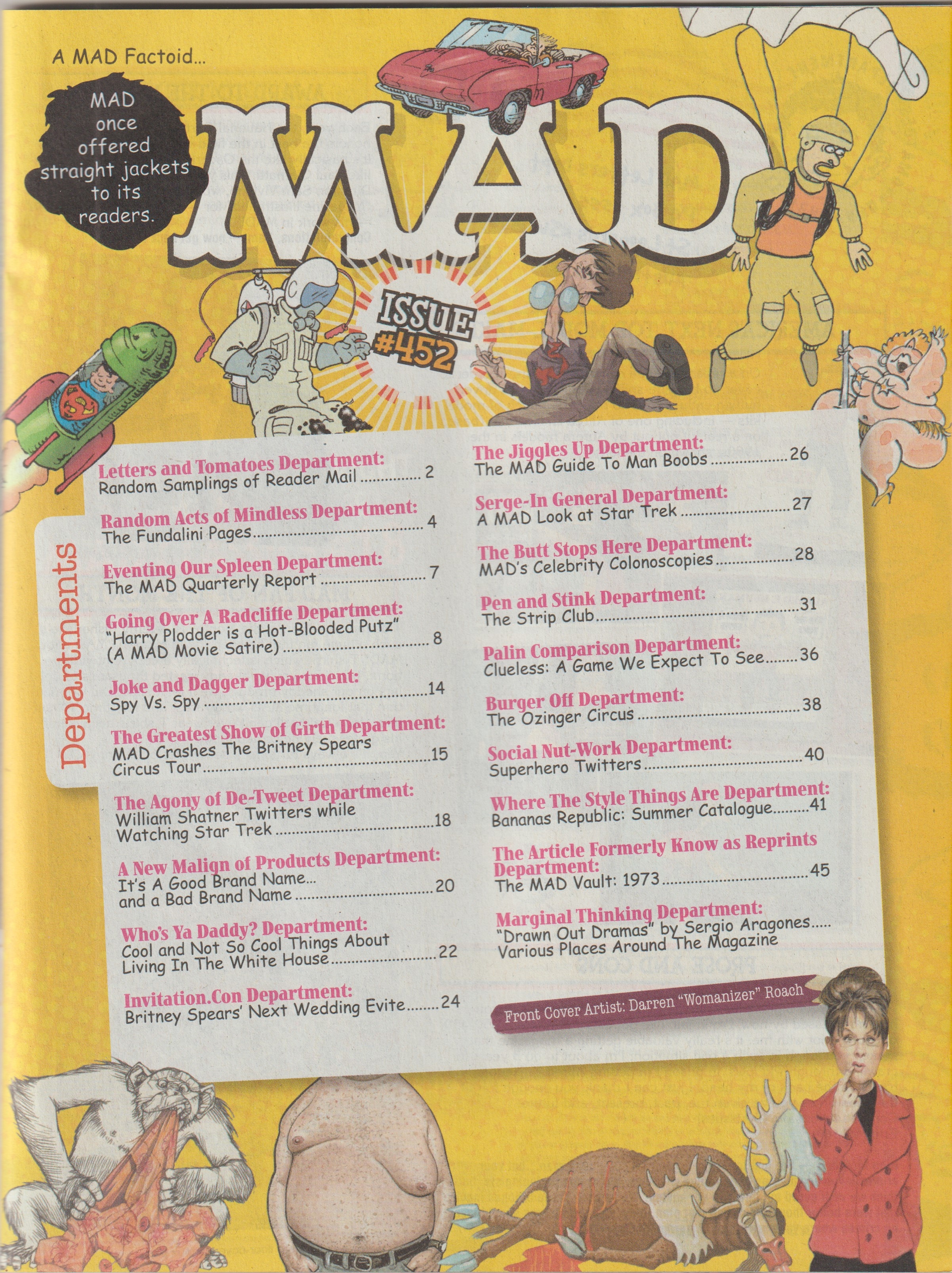 MAD Magazine #452 MAD Magazine (Australia) Updated: 0000 Country: AustraliaCompany: nextmedia Pty LtdPublished: October 1st, 2009Cover: We go inside The Britney CircusSale price: AU$5.95Pages: 50 Editorial Editor: Dave WilliamsCover Artist: Darren Roach Additional Images