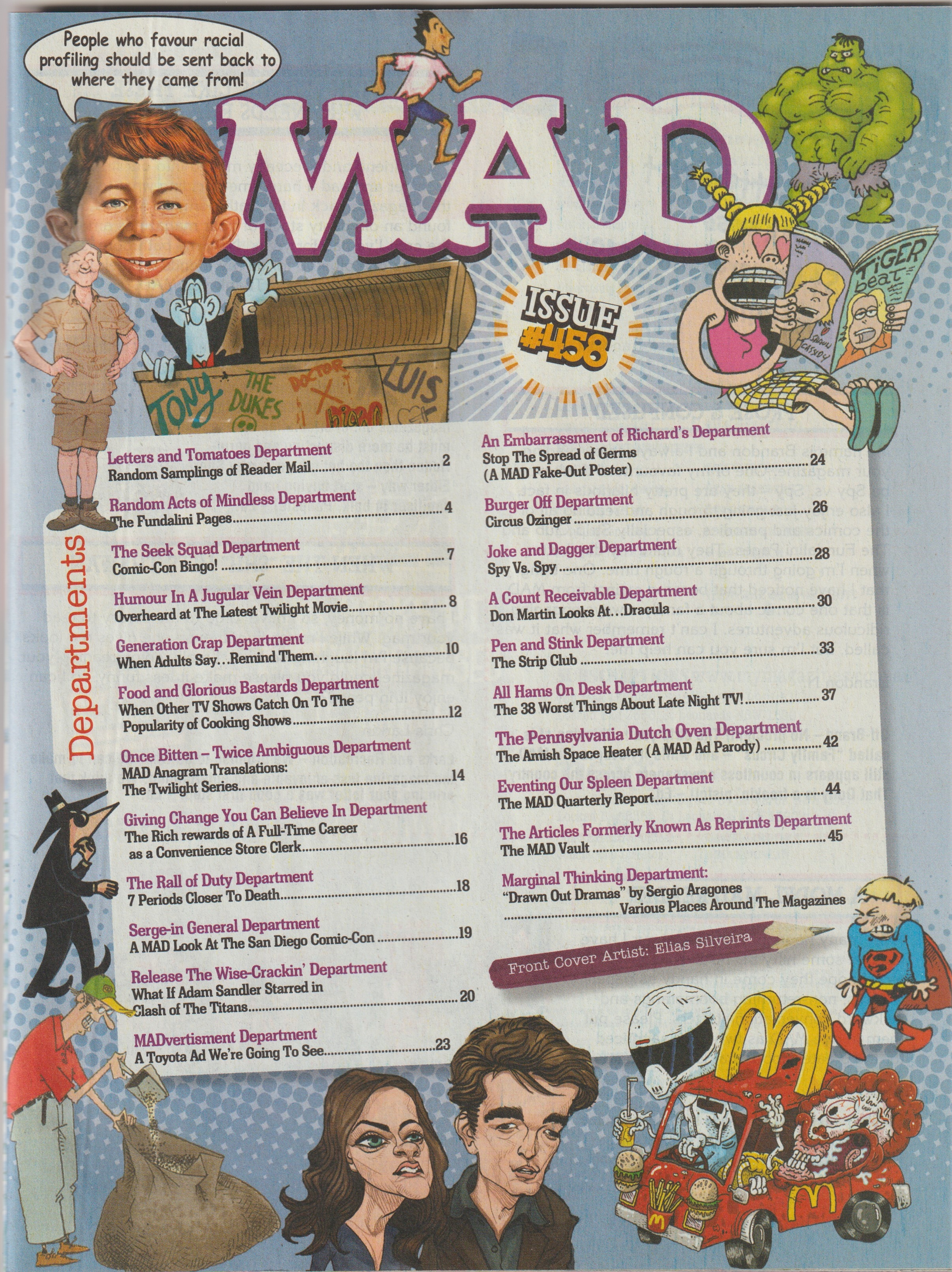 MAD Magazine #458 MAD Magazine (Australia) Updated: 0000 Country: AustraliaCompany: nextmedia Pty LtdPublished: August 1st, 2010Cover: Sink your teeth into another issue of MADSale price: AU$5.95Pages: 50 - Cover was taken from Brasil MAD Magazine Vol. 4 #14 Editorial Editor: Dave WilliamsCover Artist: Elias Silveira Additional Images