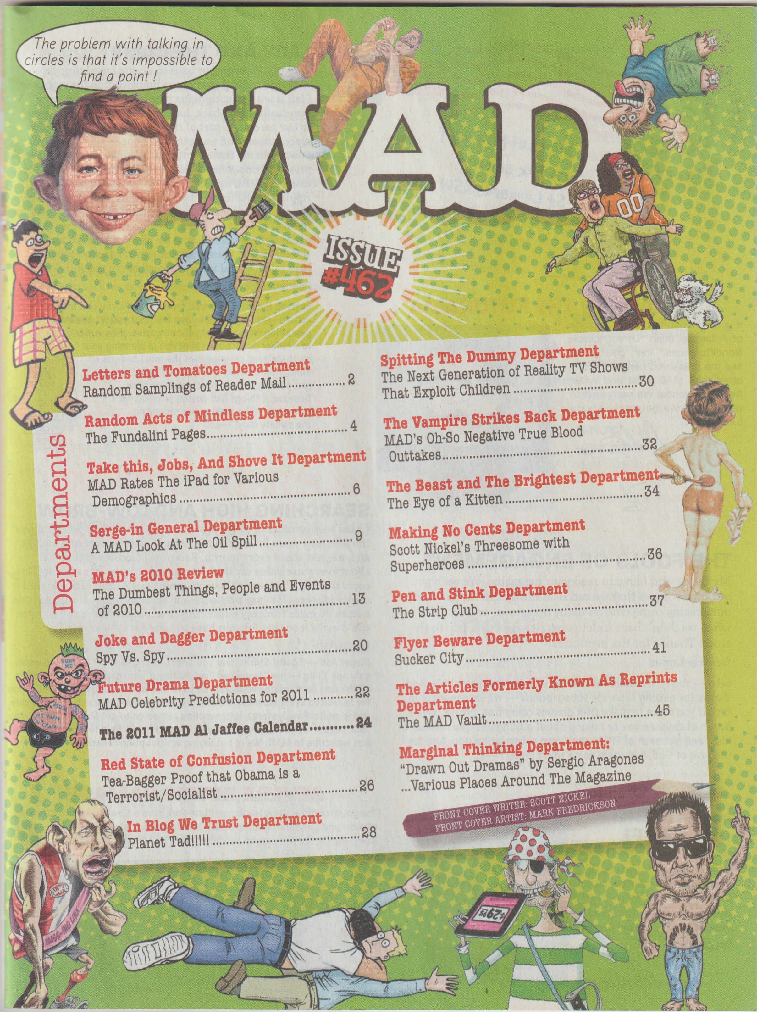 MAD Magazine #462 MAD Magazine (Australia) Updated: 0000 Country: AustraliaCompany: nextmedia Pty LtdPublished: January 1st, 2011Cover: We dump on The iPadSale price: AU$5.95Pages: 50Inserts: 2011 Calendar Editorial Editor: Dave WilliamsCover Artist: Mark Fredrickson Additional Images