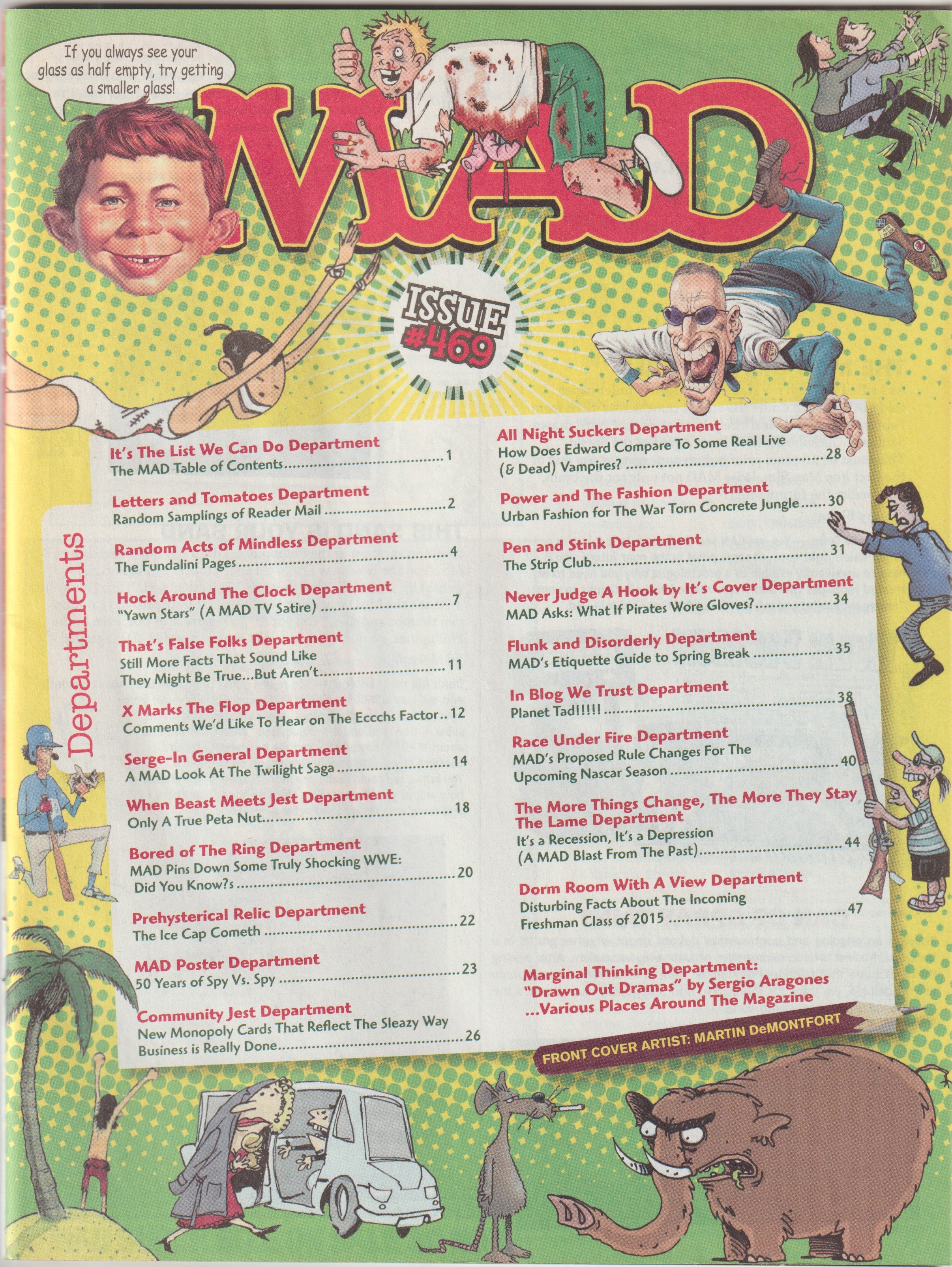 MAD Magazine #469 MAD Magazine (Australia) Updated: 0000 Country: AustraliaCompany: nextmedia Pty LtdPublished: December 1st, 2011Cover: We Stake Out The Twilight SagaSale price: AU$5.95Pages: 50 Editorial Editor: Dave WilliamsCover Artist: Martin deMontfort Additional Images