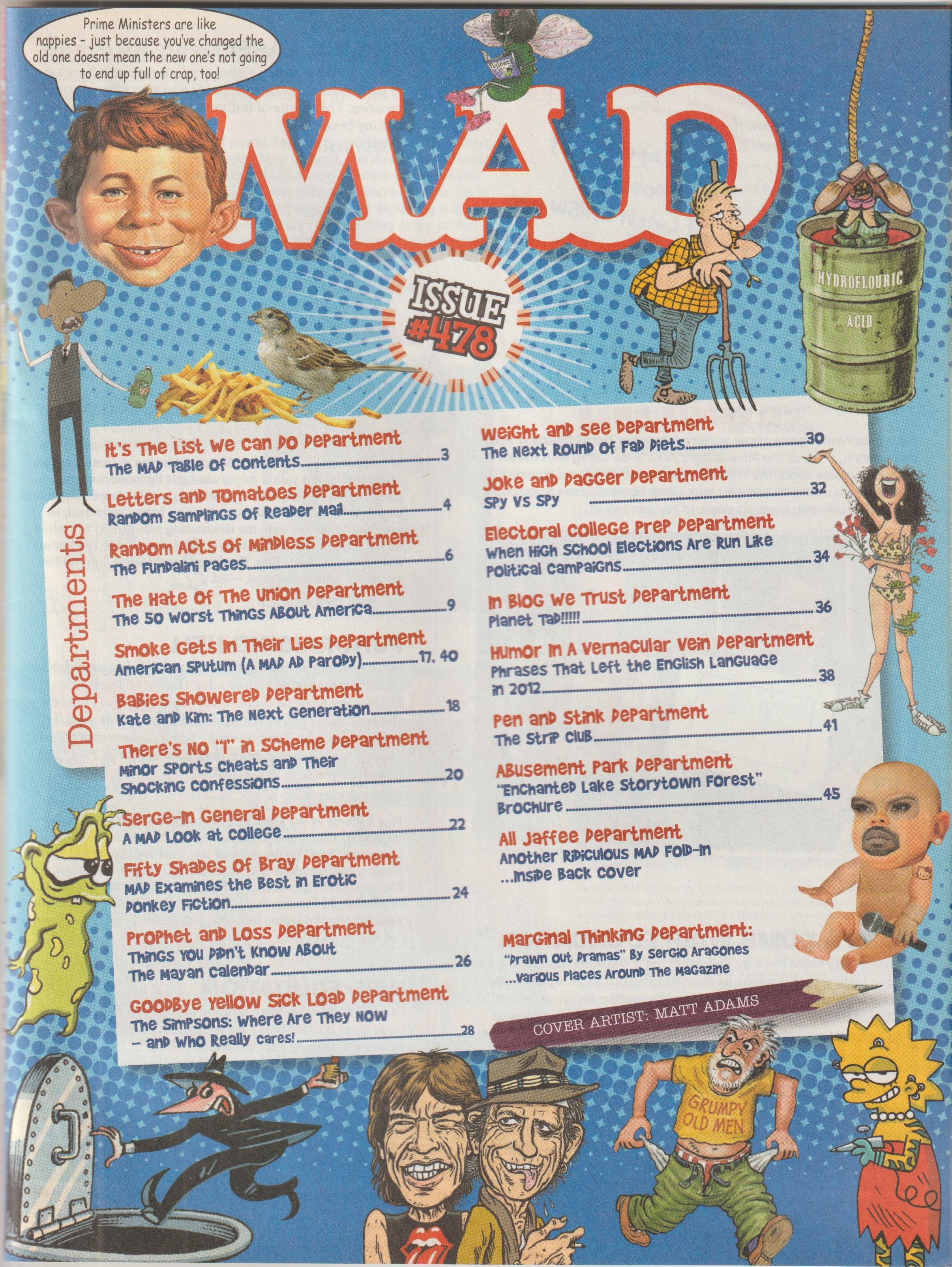 MAD Magazine #478 MAD Magazine (Australia) Updated: 0000 Country: AustraliaCompany: nextmedia Pty LtdPublished: March 1st, 2013Cover: Exclusive! First Peek at The Royal Baby!Sale price: AU$6.95Pages: 52 Editorial Editor: Dave WilliamsCover Artist: Matt Adams Additional Images