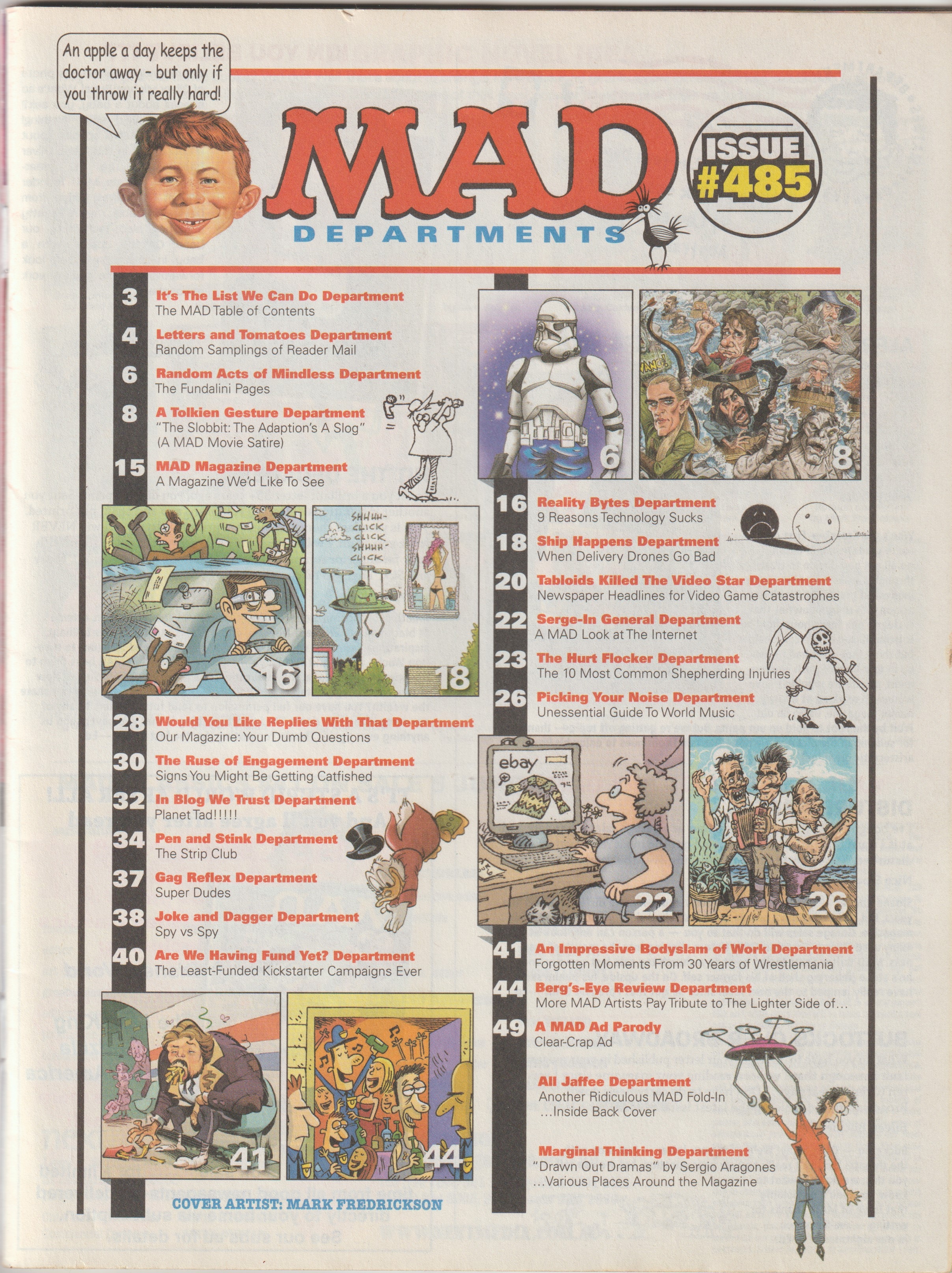 MAD Magazine #485 MAD Magazine (Australia) Updated: 0000 Country: AustraliaCompany: nextmedia Pty LtdPublished: June 1st, 2014Cover: Welcome to Technology Hell!Original cover: MAD Magazine #517 • USA • 1st Edition - New YorkSale price: AU$6.95Pages: 52 Editorial Editor: Dave WilliamsCover Artist: Mark Fredrickson Additional Images Cover Variations USA Featured characters Bruno Tonioli (Public Character)
