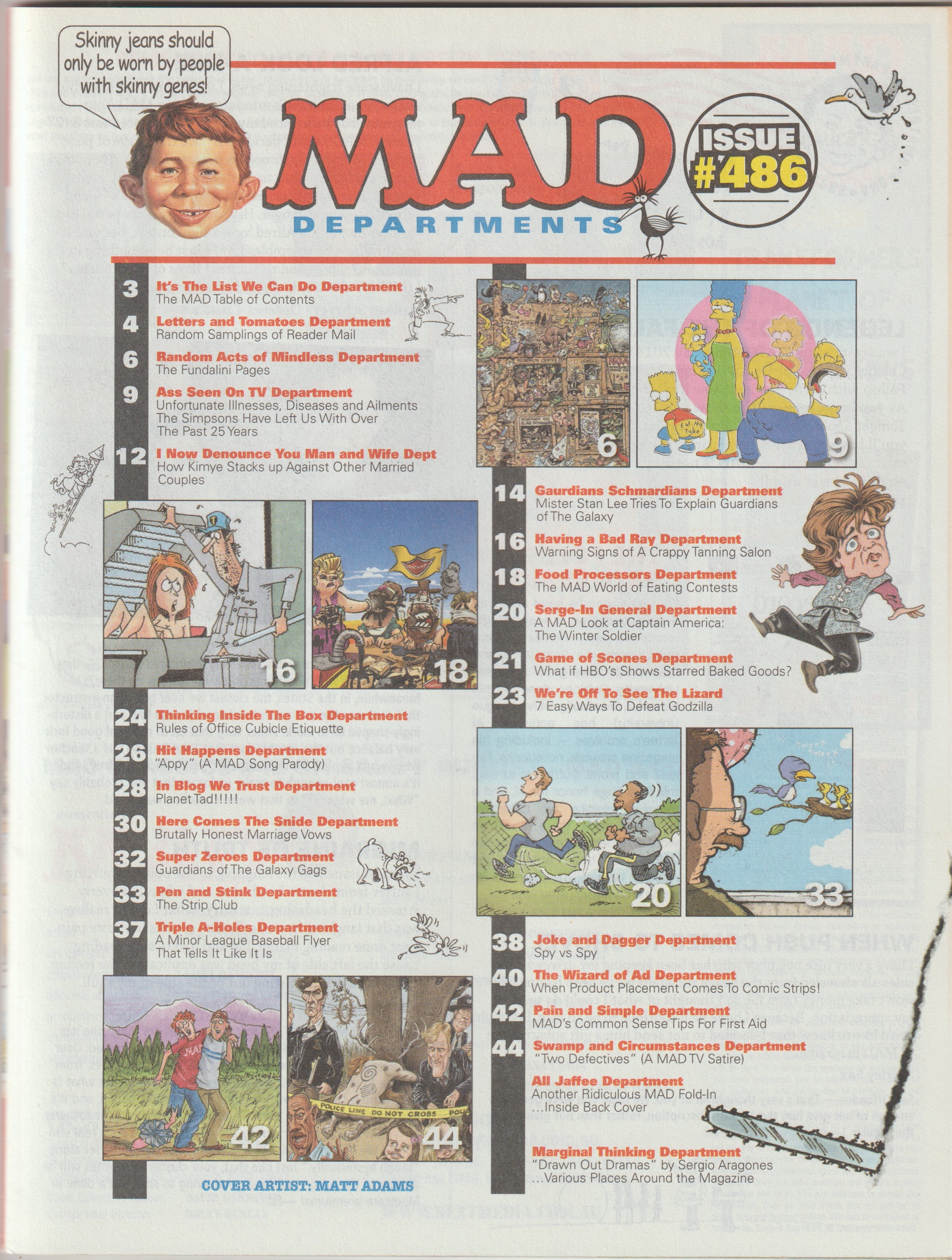 MAD Magazine #486 MAD Magazine (Australia) Updated: 0000 Country: AustraliaCompany: nextmedia Pty LtdCover: MAD celebrates 25 years of exploiting The SimpsonsSale price: AU$6.95Pages: 52 Editorial Editor: Dave WilliamsCover Artist: Matt Adams Additional Images