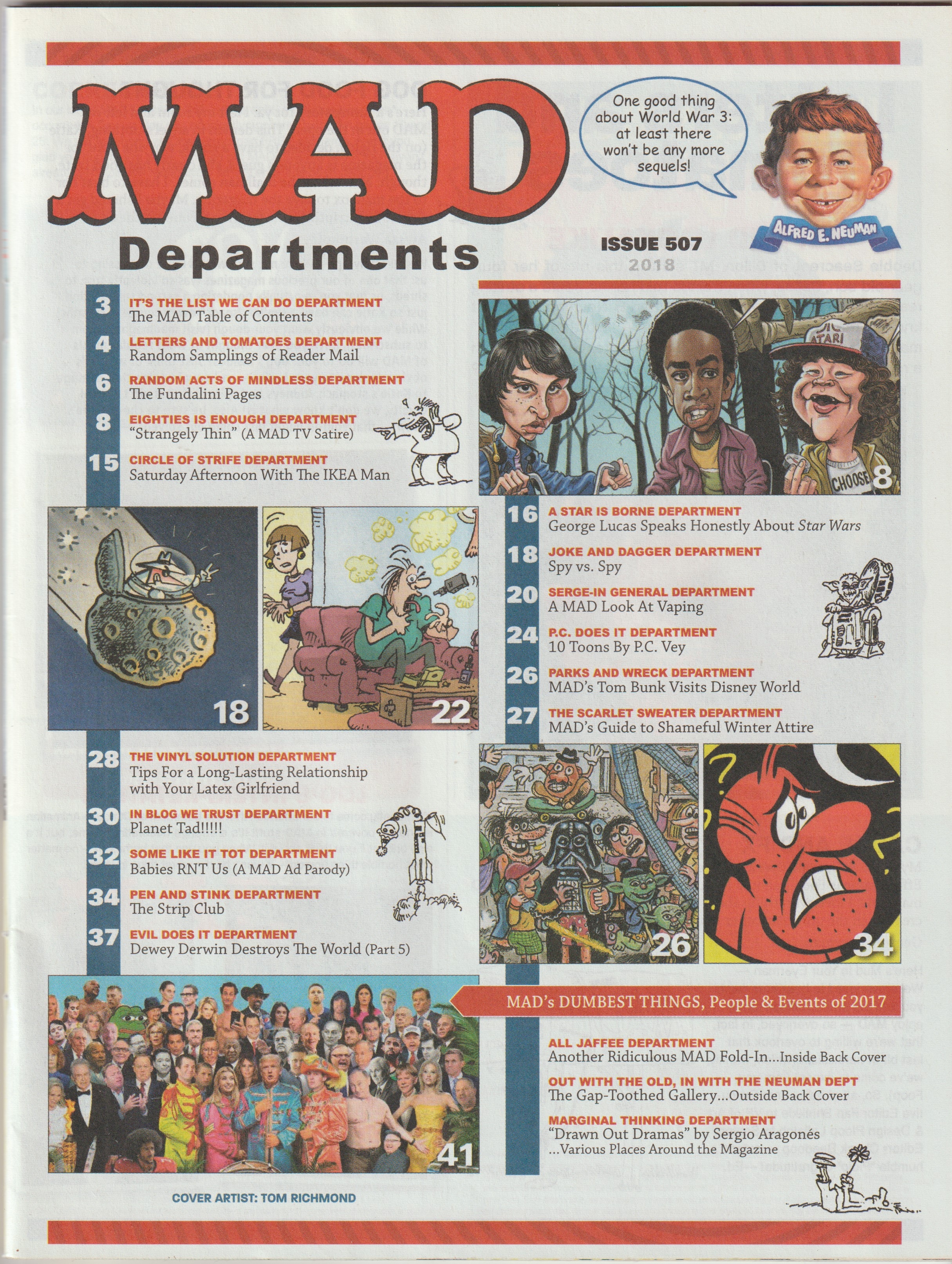 MAD Magazine #507 MAD Magazine (Australia) Updated: January 20th, 2018 Country: AustraliaCompany: nextmedia Pty LtdPublished: January 1st, 2018Cover: We Binge On Stranger ThingsOriginal cover: MAD Magazine #548 • USA • 1st Edition - New YorkSale price: AU$ 6.95Pages: 52Inserts: - Editorial Designer, Editor: Dave WilliamsProduction Manager: Peter RymanCirculation Director: Carole JonesGraphics Consultant: Jono Bishop Additional Images Cover Variations USAUSA