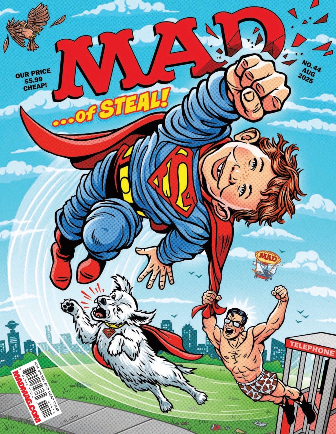 MAD Magazine #44 MAD Magazine (USA) Updated: October 2nd, 2025 Country: USAEdition: 2nd Edition - CaliforniaCompany: E.C. Publications, Inc.Published: August 2025Cover: MAD ...of Steal!Sale price: $5.99Pages: 58Format: Magazine Editorial Assistant Art Director: Bernard MendozaEditorial Consultant: Paula SevenbergenArt Director: Suzy HutchinsonCover Artist: Kerry Callen