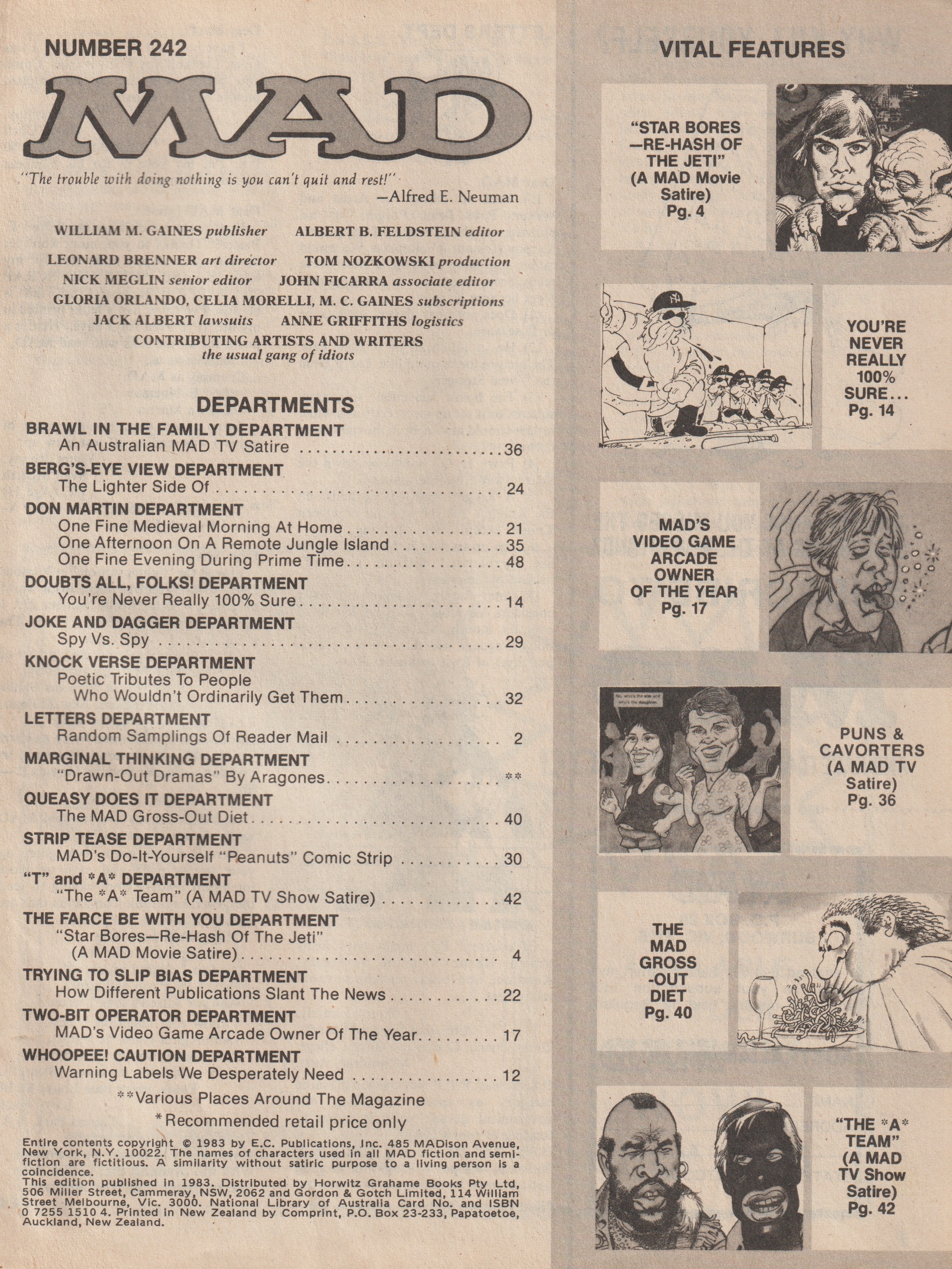 MAD Magazine #242 MAD Magazine (Australia) Updated: 0000 © CollectMAD.com Country: AustraliaOriginal cover: MAD Magazine #242 • USA • 1st Edition - New York Additional Images Cover Variations USAGreat BritainGermanyGreeceSweden